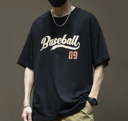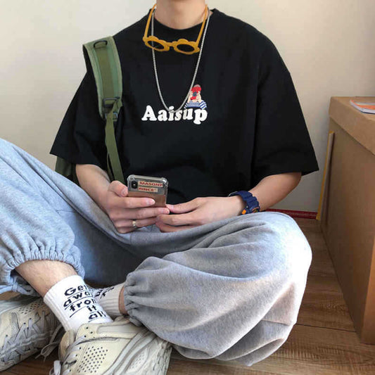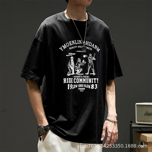 CBE8032-96B 純棉200克國潮T恤短袖寬鬆上衣字母印花(5色)