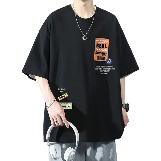 CBE1358-96B 純棉200克國潮T恤短袖寬鬆上衣字母印花(5色)