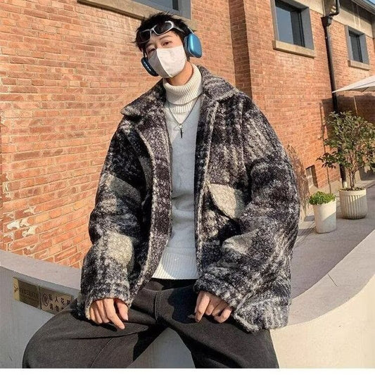 CBC3042-54B 格子毛呢夾克春秋翻領寬鬆外套