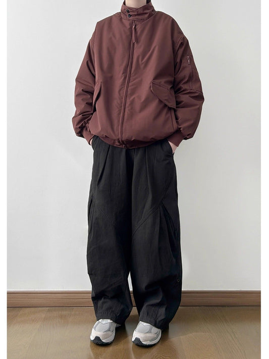CBA866-124B 冬季雙面加絨加厚360g保暖奧粒絨直筒寬鬆闊腿長褲(5色)