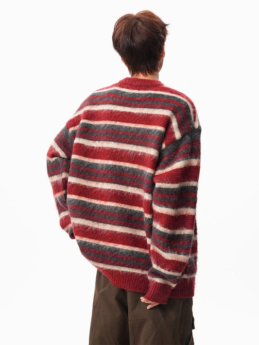 CBD3182-54B 秋季復古寬鬆條紋圓領針織衫