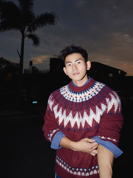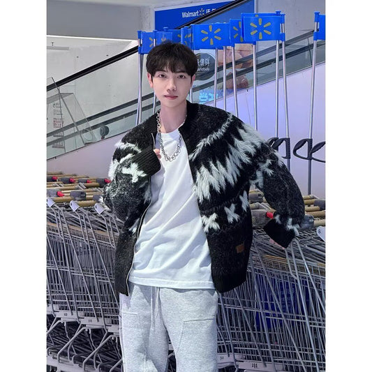 CBC3113-54B 復古撞色冬季寬鬆加厚針織衫外套(2色.男女同款)