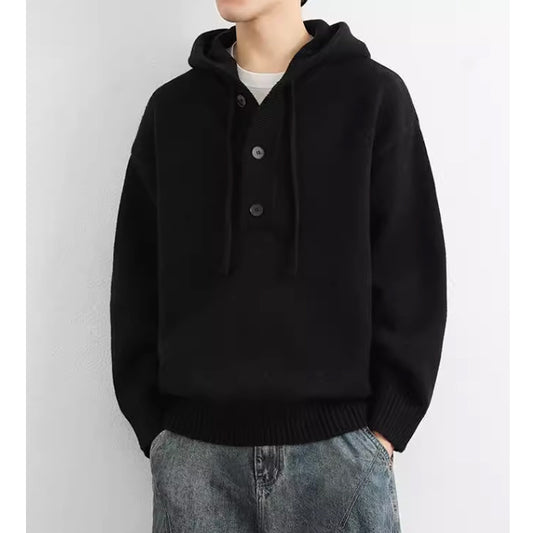 CBDJW210-124B 秋冬季連帽紐扣半開衫針織厚實高毛衣(2色)