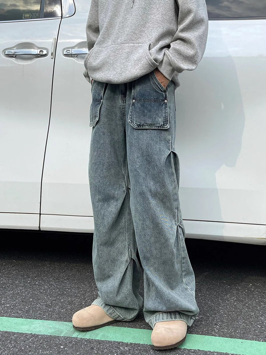 CBA8304-54B 復古闊腿夏季薄款寬鬆直筒牛仔長褲
