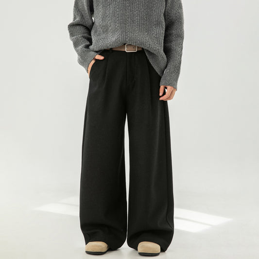 CBAMK2446-8H 毛呢西褲秋季直筒寬鬆打褶加厚長褲(3色)