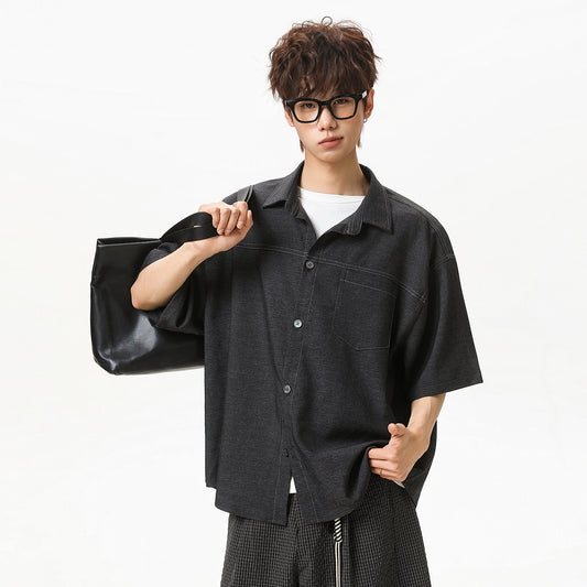 CBEOC7241-8H 夏季薄款撞色明線仿牛仔短袖襯衫(3色)