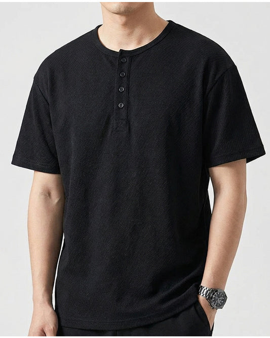 CBE33115-124B 休閒200g克首爾斜紋棉半開襟亨利領短袖T恤(3色)
