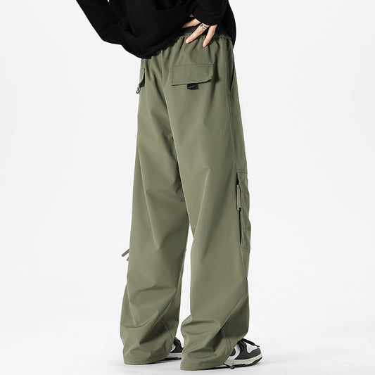 CBA2458-124B 日系拉鍊工裝褲寬鬆直筒束脚口袋長褲(3色)