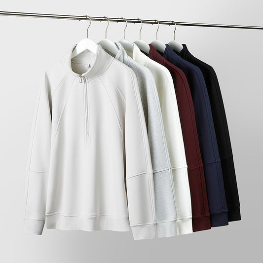 CBD55692-124B 立領半拉鍊420g秋季分割寬鬆上衣(6色)