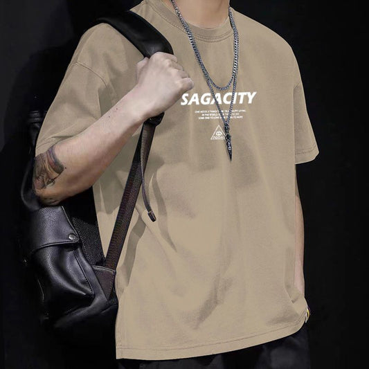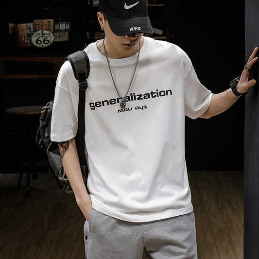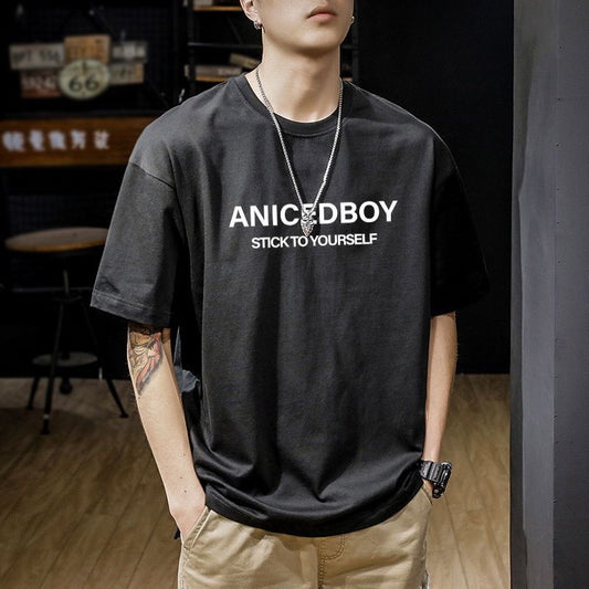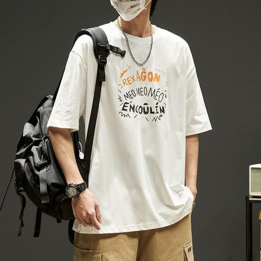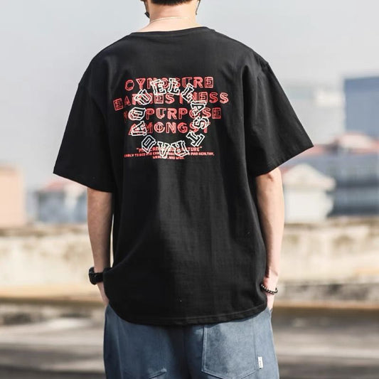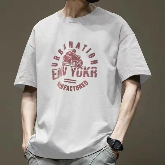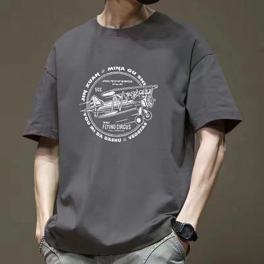 CBE252-96B 純棉200克夏季新款短袖T恤寬鬆潮流簡約印花T恤(6色)