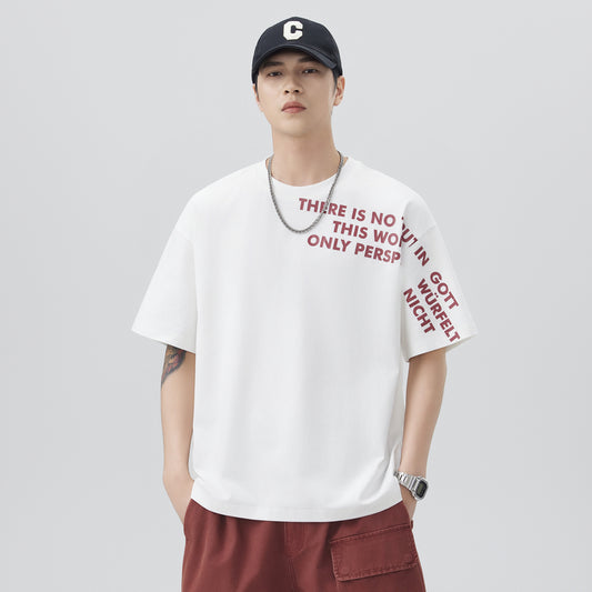 CBE8032-96B 純棉200克國潮T恤短袖寬鬆上衣字母印花(5色)