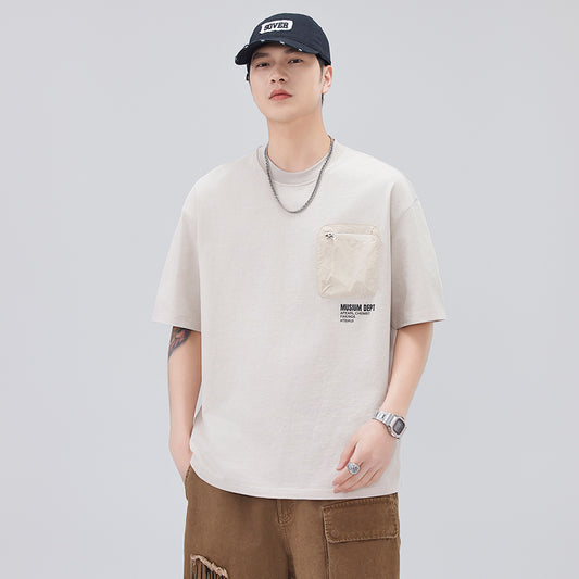 CBEET5805-84B 夏季百搭純棉舒適簡約口袋裝潢圓領T恤(3色)