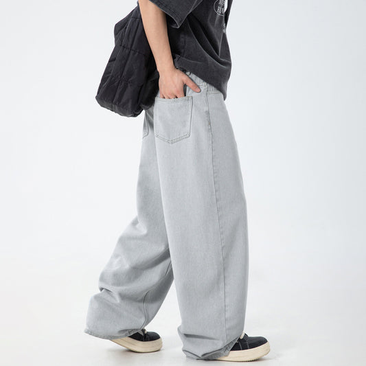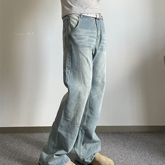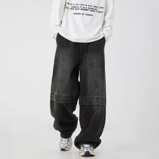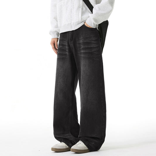 CBAMN2433-8H 做舊水洗闊腿牛仔褲春夏款廓形寬鬆長褲(3色)
