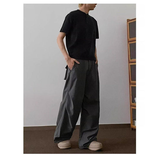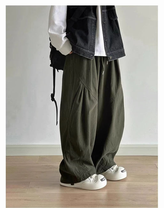 CBA8414-54B 春秋日系工裝闊腿褲百搭褶皺直筒寬鬆長褲(2色)