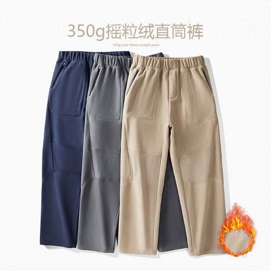 CBA93276-124B 工裝口袋拉鏈350g雙面搖粒絨直筒加絨保暖運動休閒長褲(3色)