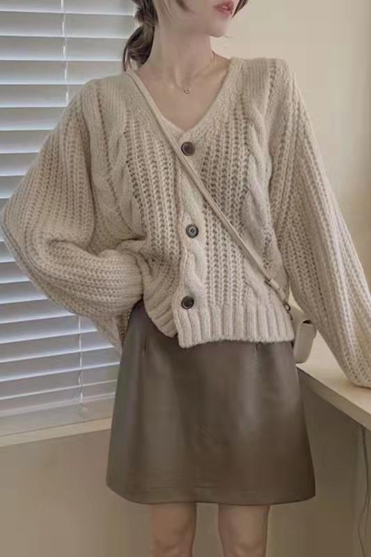 CGCM60809-54B V領絞花毛衣開衫(4色)