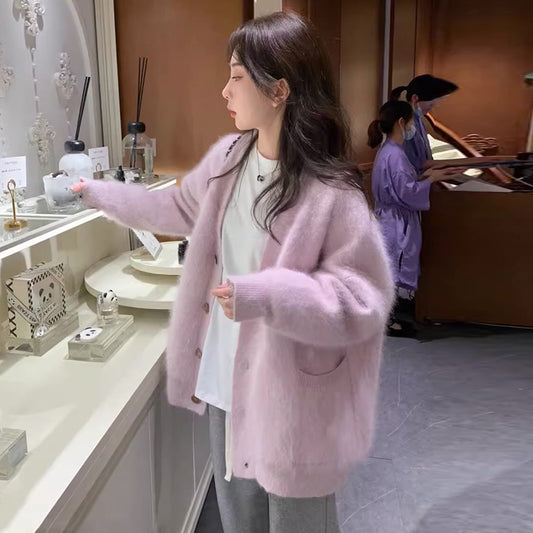 CGC706718-54B 水貂絨針織開衫秋冬中長款加厚毛衣外套(2色)