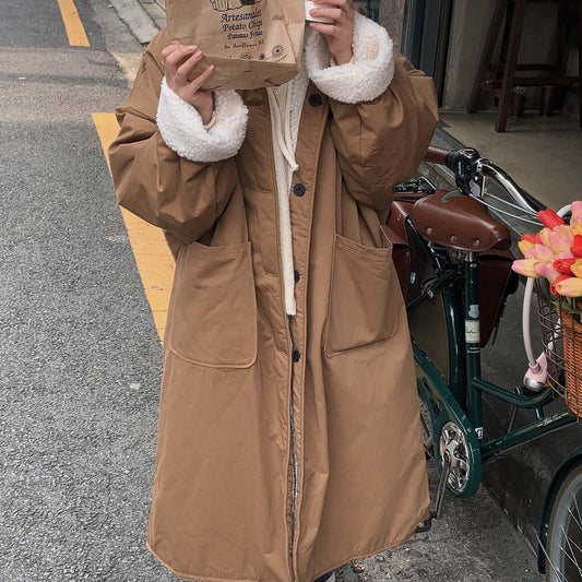 CGC7233-32B 厚實保暖秋冬兩面穿羊羔毛棉衣長款棉服外套(3色)