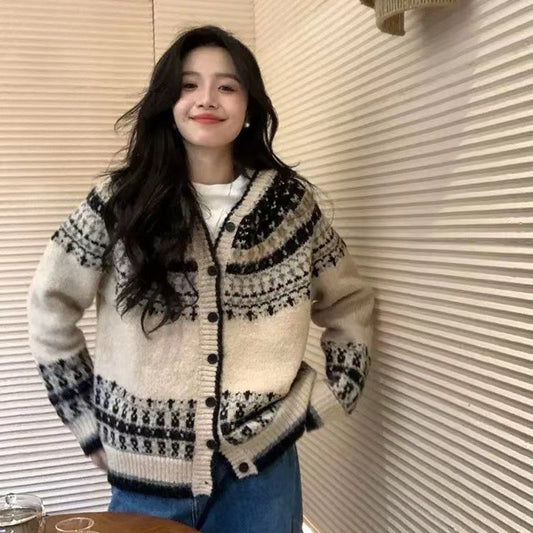 CBC3113-54B 復古撞色冬季寬鬆加厚針織衫外套(2色.男女同款)
