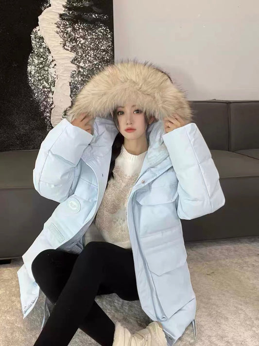 CGC7012-27B 加毛棉衣派克服韓版中長款大毛領羽絨棉服(5色)