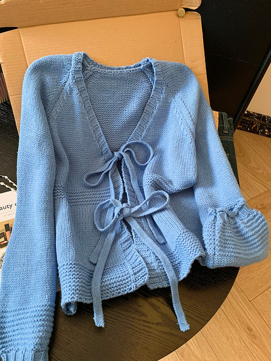 📺︎︎ CGC52756-1-86B 早秋燈籠袖系帶針織開衫外套(2色)