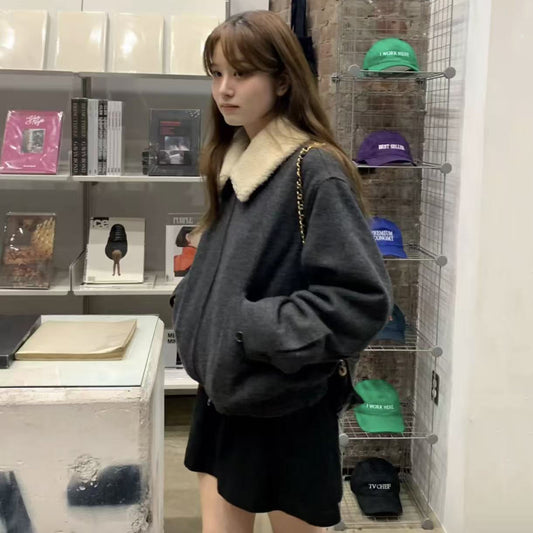 CGC0728-38B 基礎款秋冬純色簡約百搭休閒羊羔毛外套(2色)