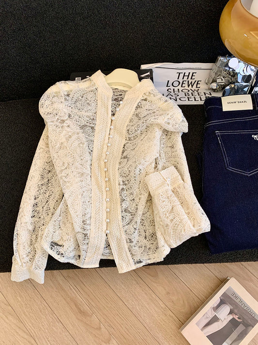 CGD52579-1-86B 蕾絲長袖襯衫秋季疊穿馬甲背心兩件套