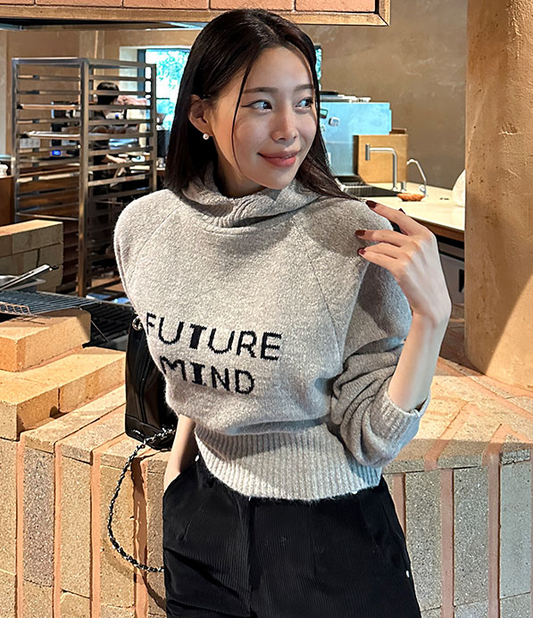 CGD9385-32B 秋冬字母撞色連帽打底衫長袖針織毛衣(2色)