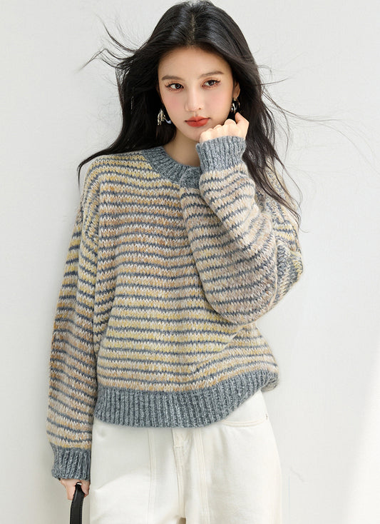 CGD6486-17B 漸變色條紋圓領毛衣秋冬針織衫(2色)