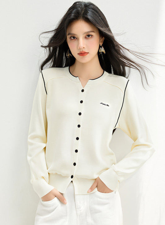 CGD6580-17B 純棉全棉線刺繡針織開衫春秋季長袖薄款上衣(2色)