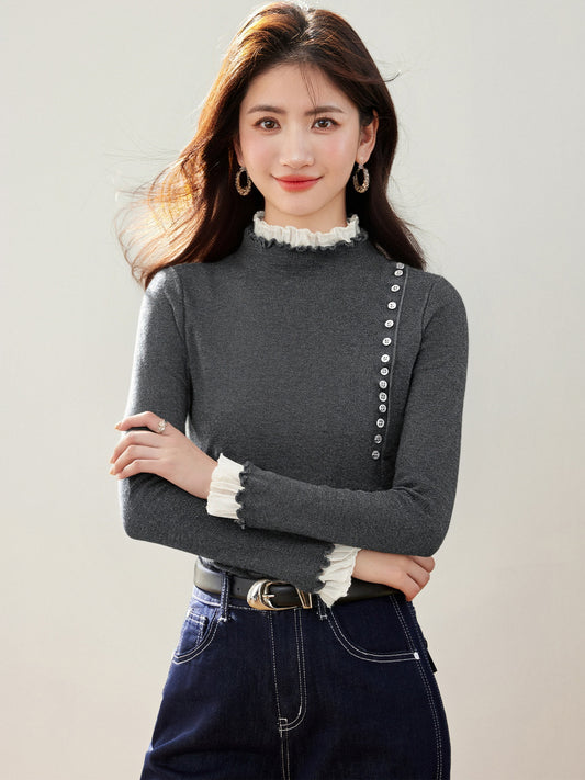 CGD9766-89B 半高領拼接針織內搭秋冬修身顯瘦長袖(2色)