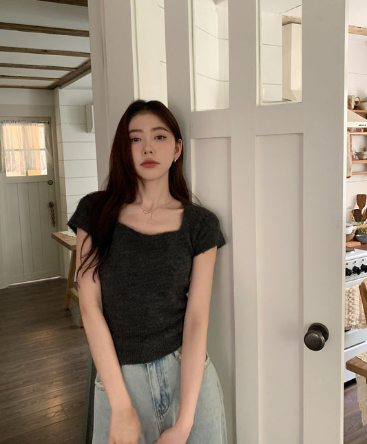 CGE888-120B 馬海毛超顯白小方領短款針織上衣(2色)
