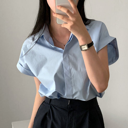 CGE3760-47B 極簡休閒經典百搭卷袖設計襯衫上衣(2色)