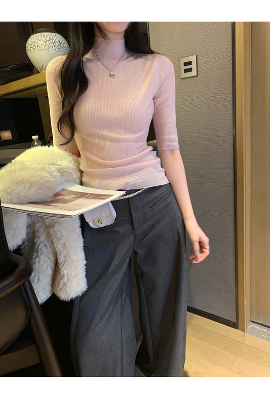 📺︎︎ CGEM1493-45B 半高領針織半袖上衣(5色)