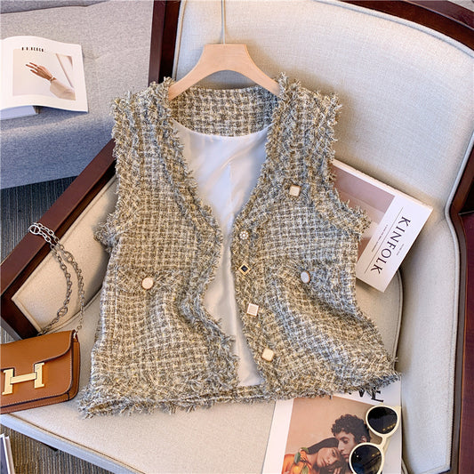 CGF6734-119B 秋冬款重工編織粗花呢小香風馬甲(2色)