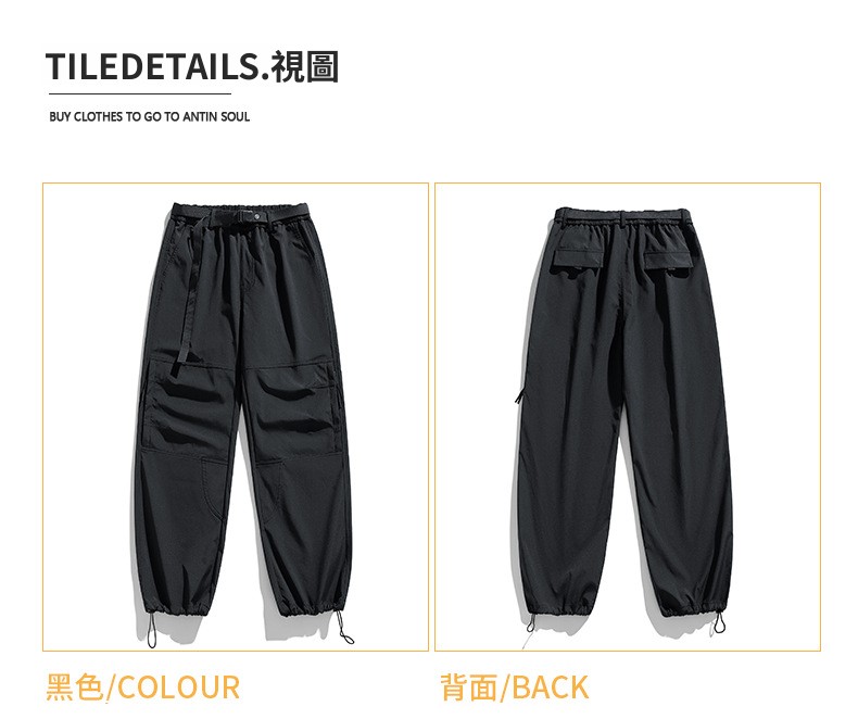 CBA2458-124B 日系拉鍊工裝褲寬鬆直筒束脚口袋長褲(3色)