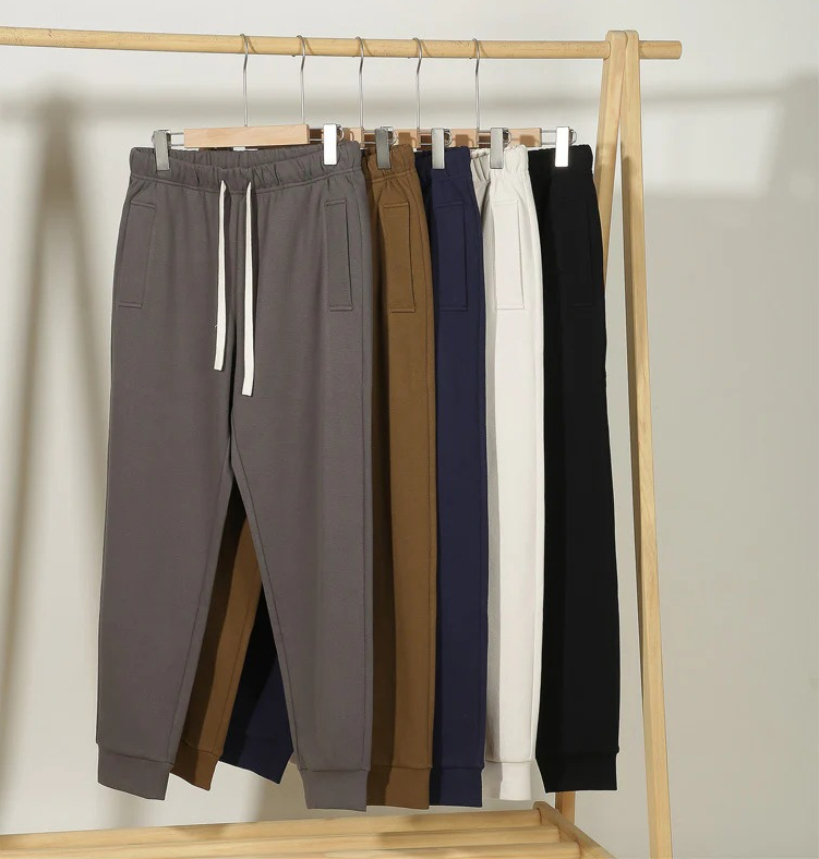 CBA93223-124B 秋季300g斜紋日系長褲錐型寬鬆純色針織束腳褲(5色)