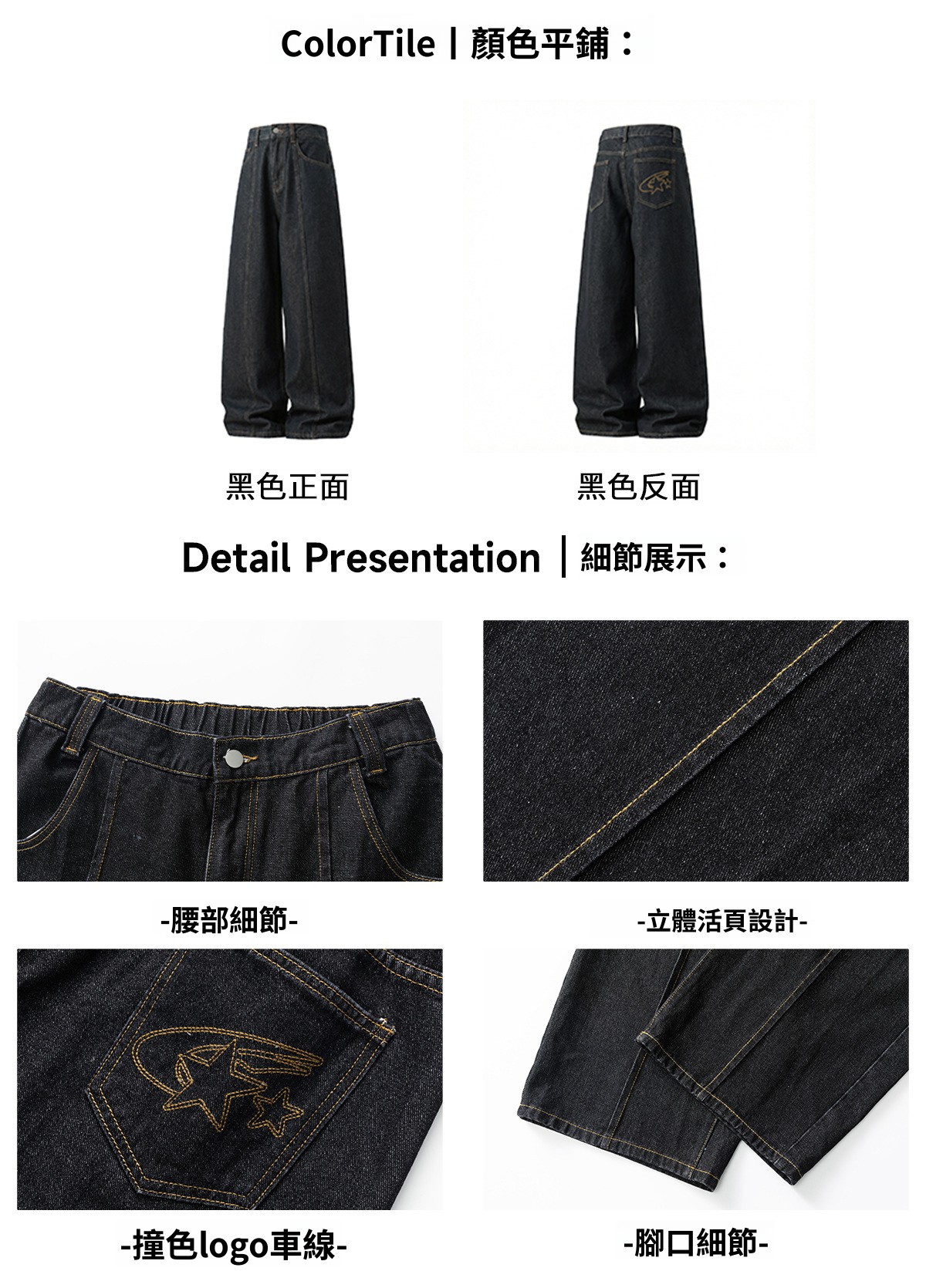 CBAON2636-8H 春季款撞色明線分割直筒寬鬆休閒長褲