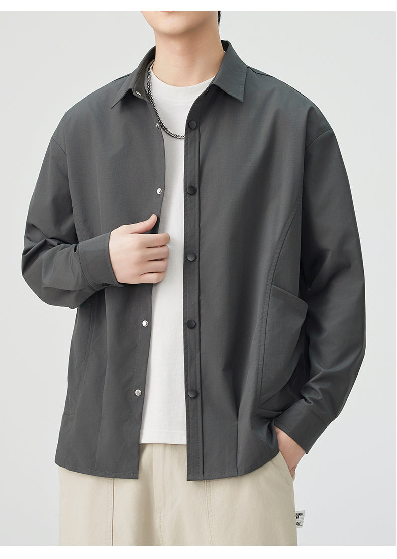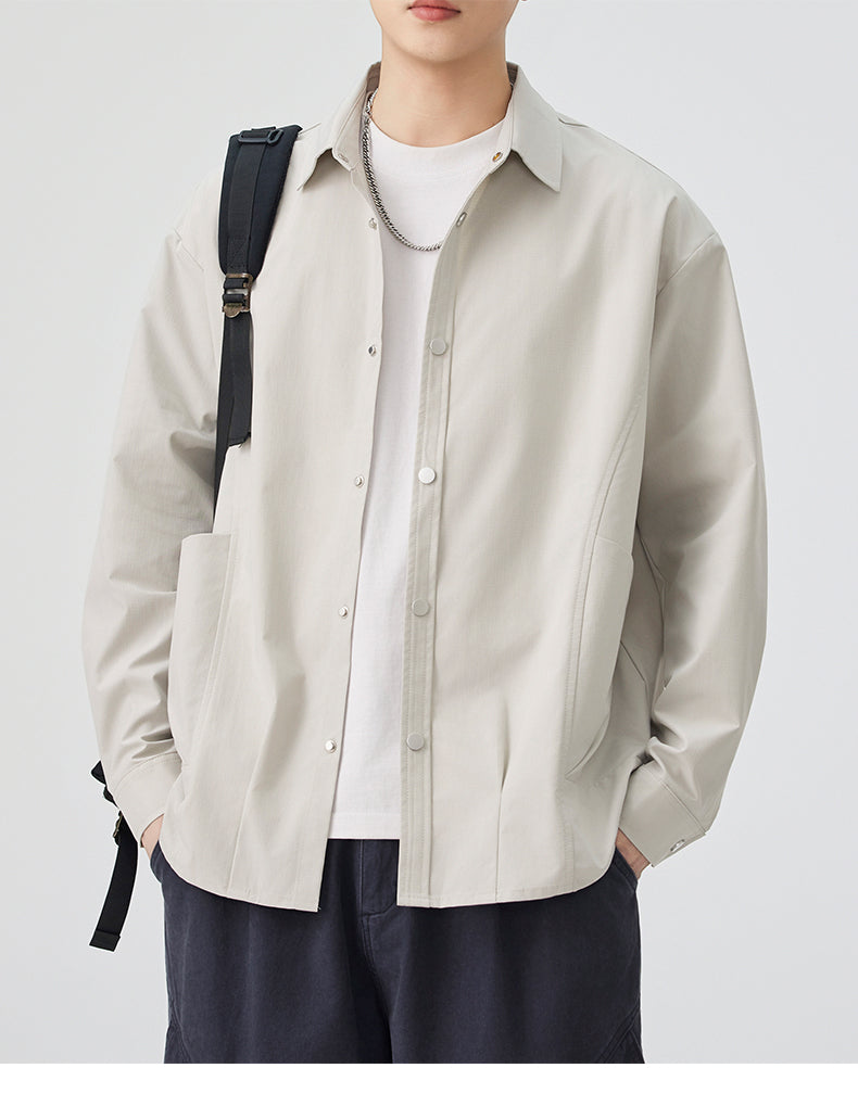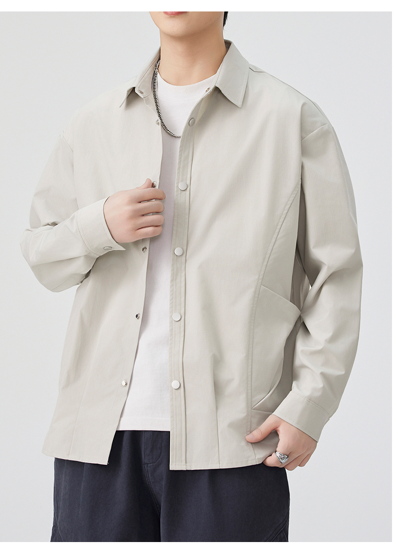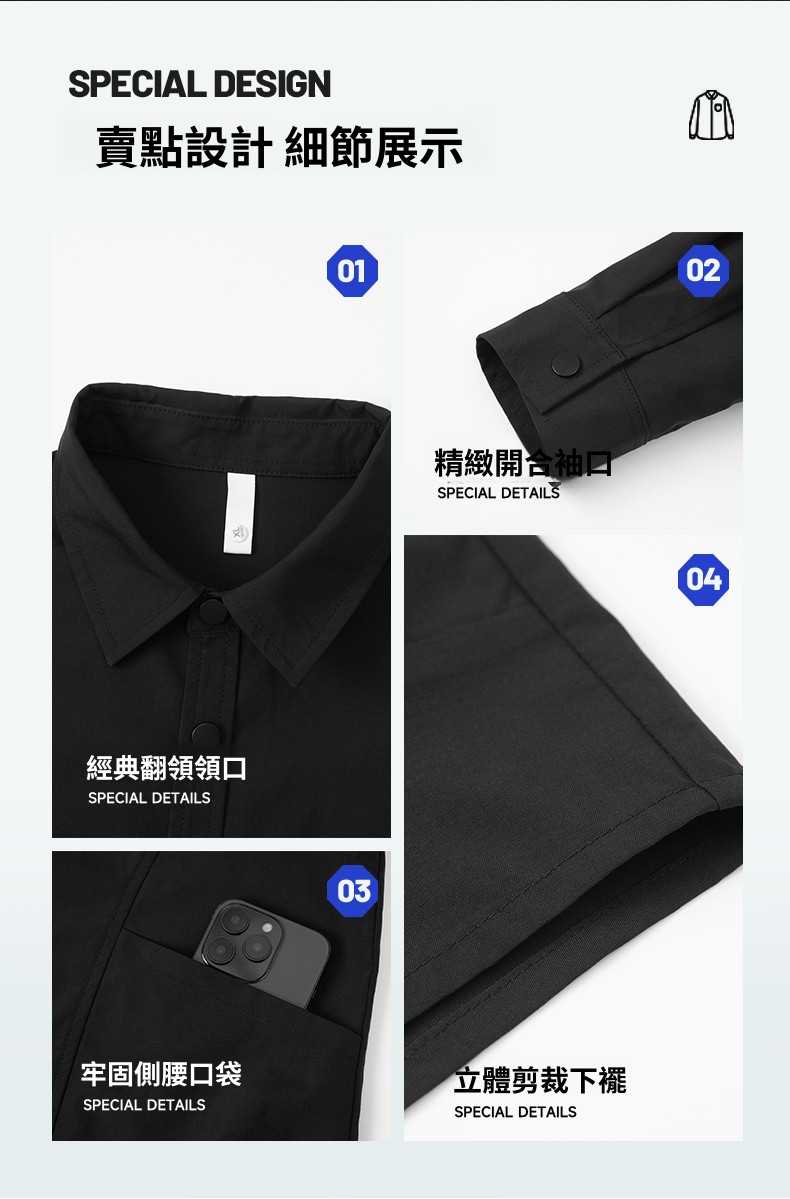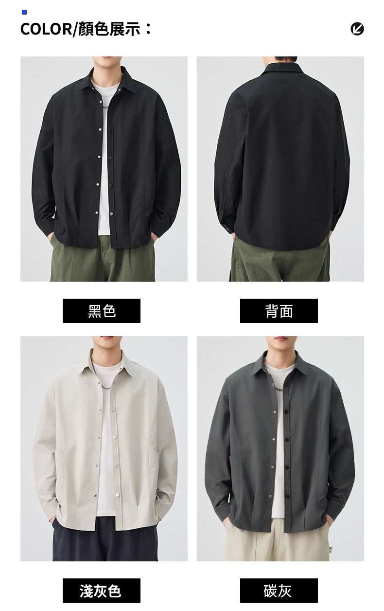 CBCMYC25-4564 秋季長袖襯衫翻領純色拼接口袋款襯衣(3色)