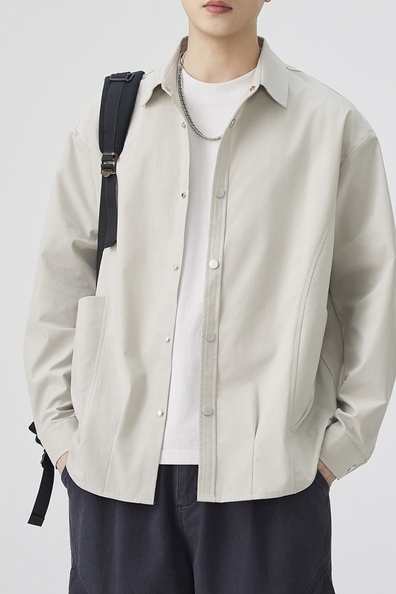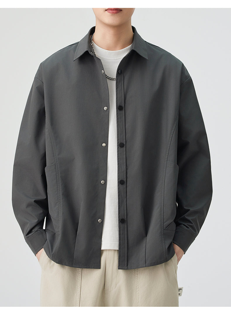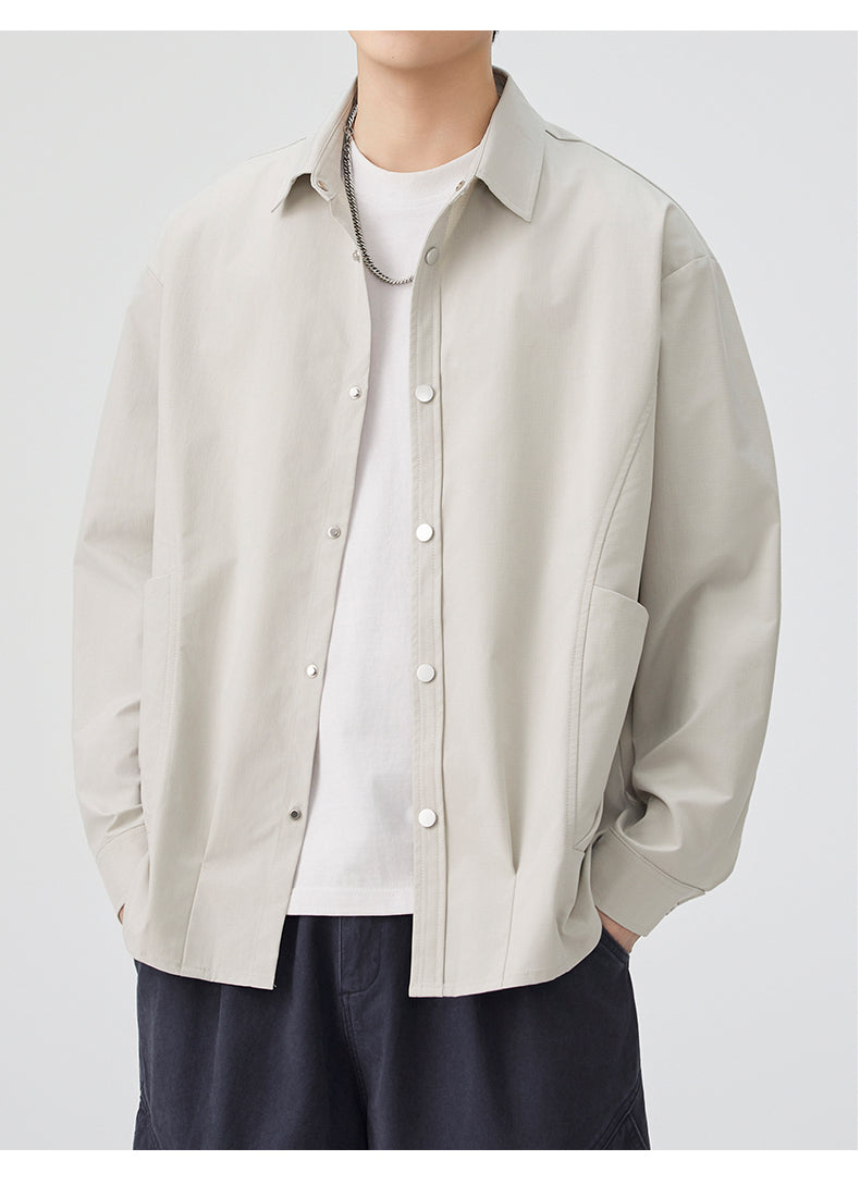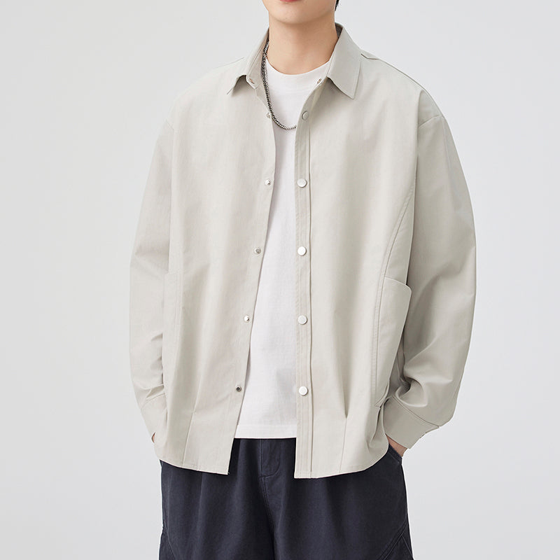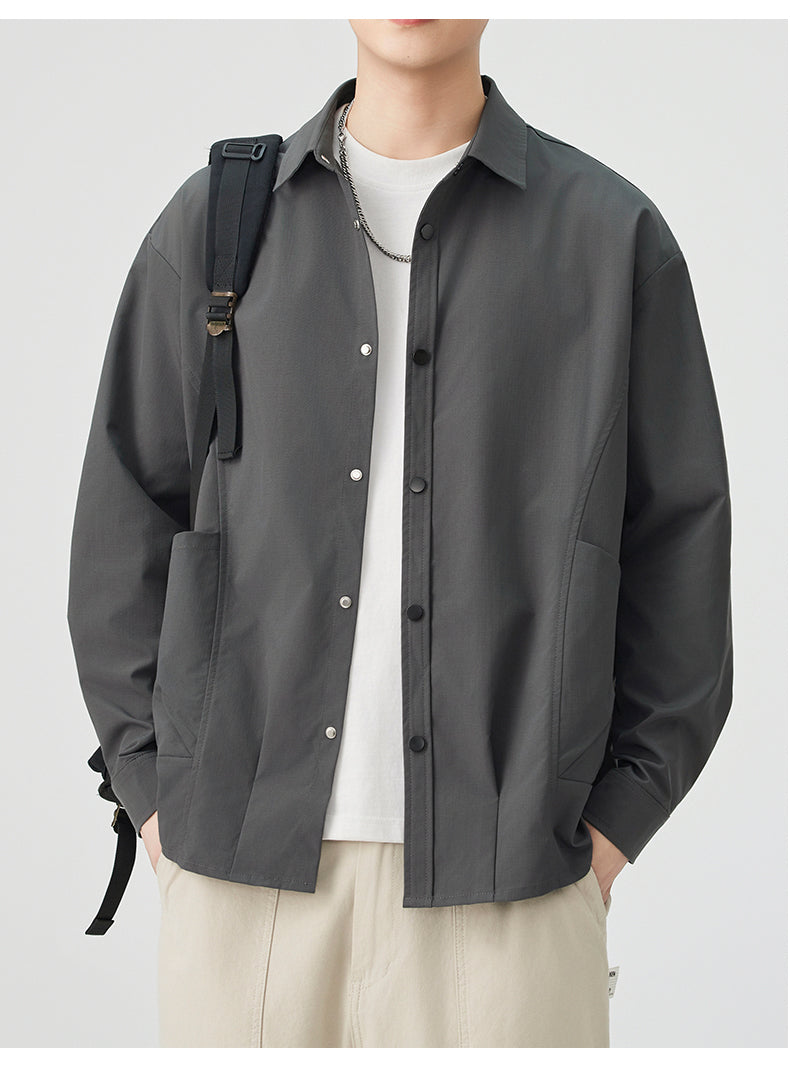 CBCMYC25-4564 秋季長袖襯衫翻領純色拼接口袋款襯衣(3色)