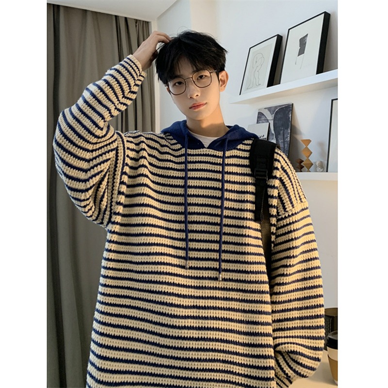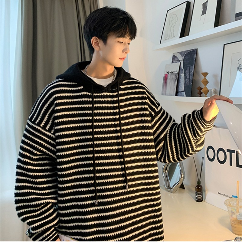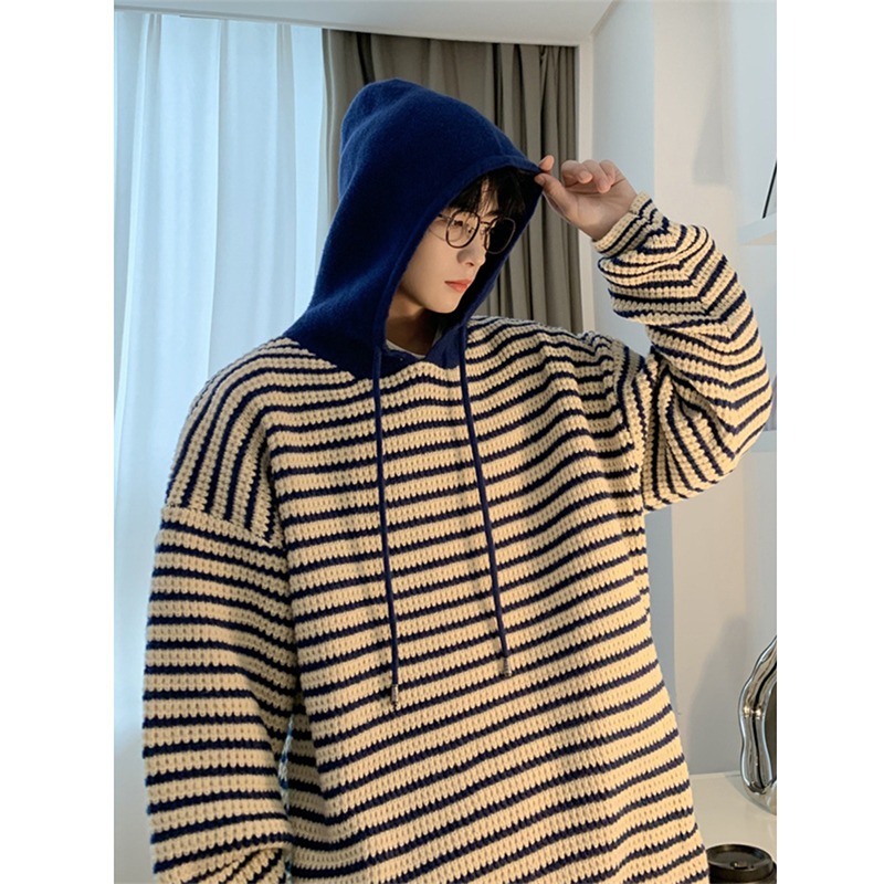 CBDD42UM-72B 條紋連帽毛衣秋冬季休閒寬鬆針織衫(2色)