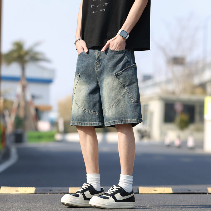 CBSTPD2-65B 夏季寬鬆牛仔短褲百搭大口袋洗水做舊工裝五分中褲(2色)