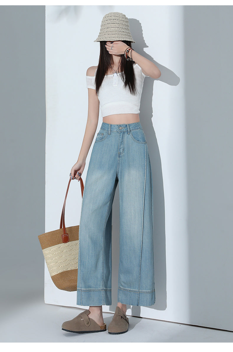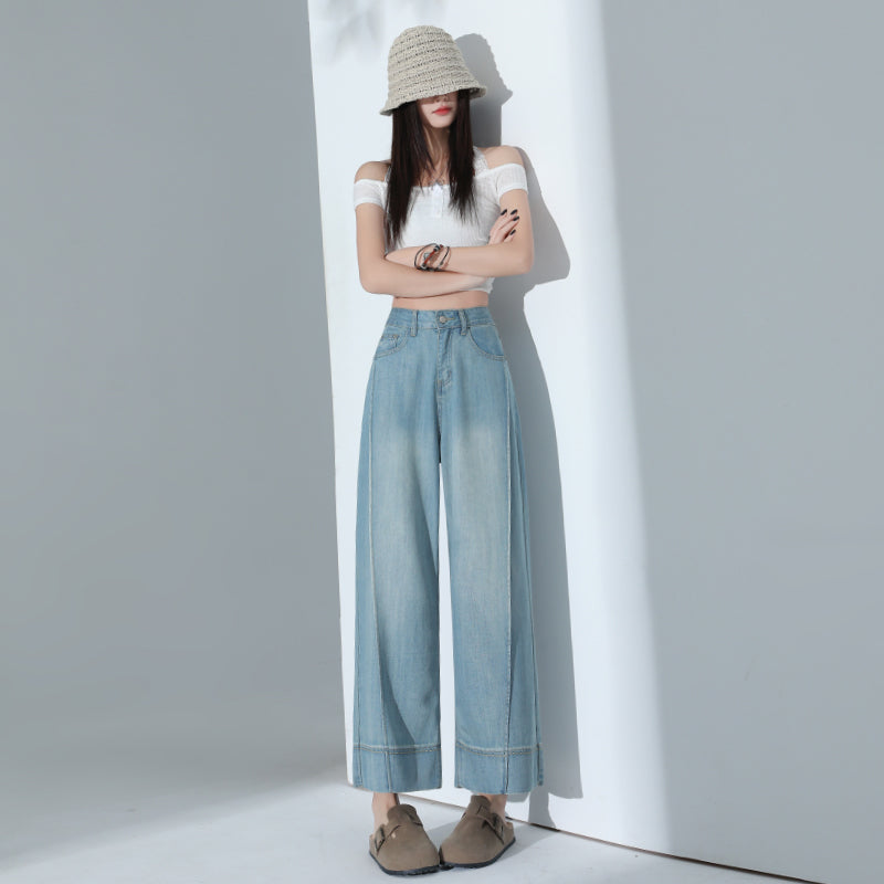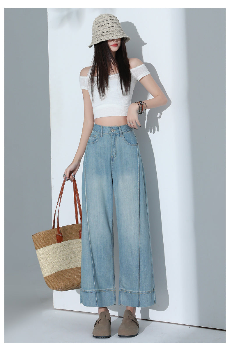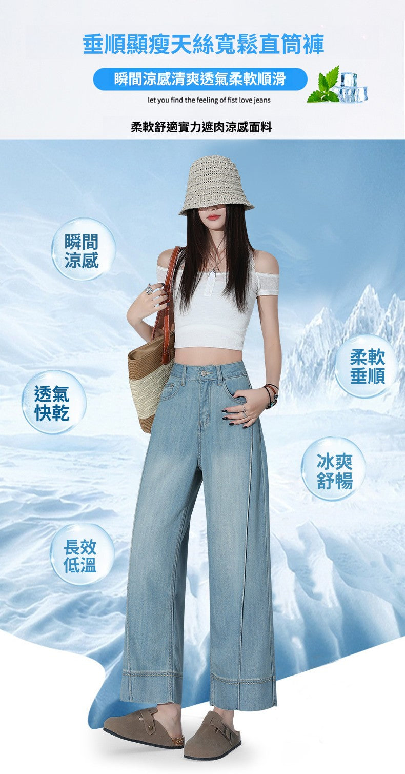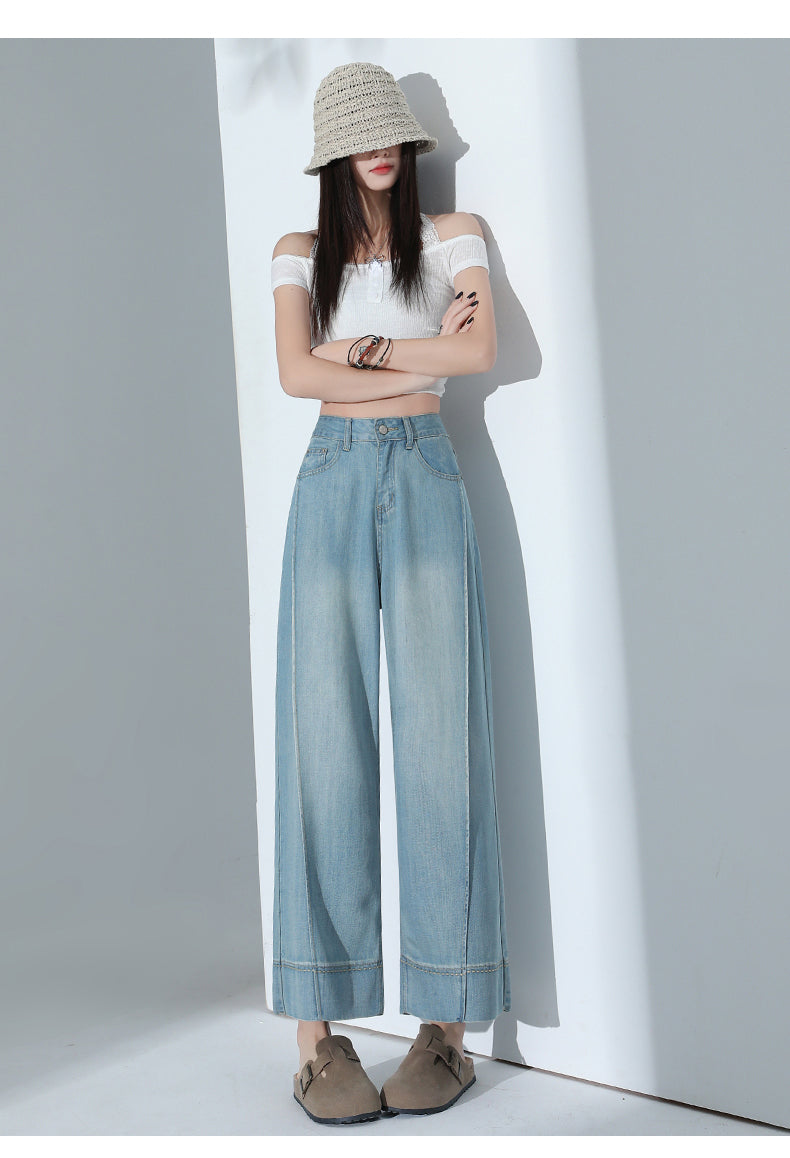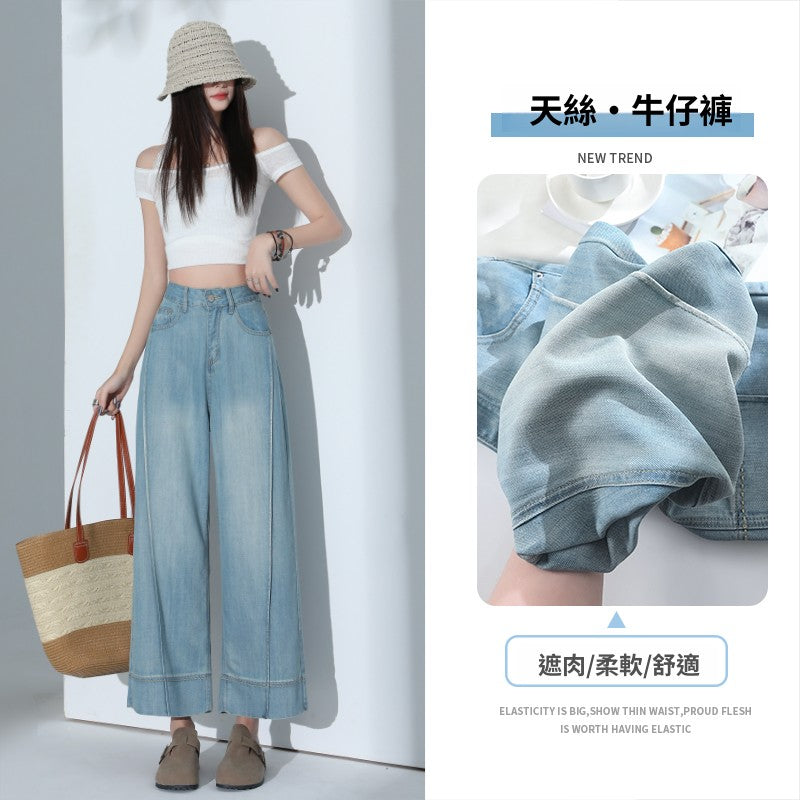 CGA6178-11B 夏薄款萊賽爾高腰垂感淺色天絲闊腿牛仔褲