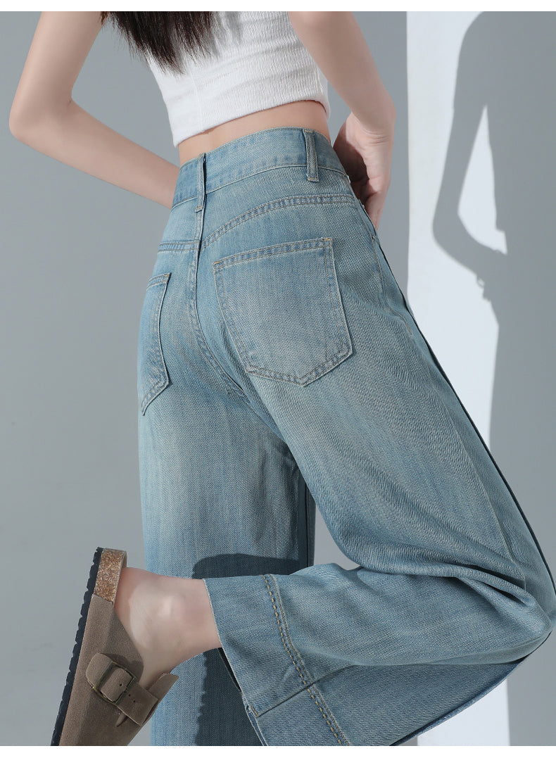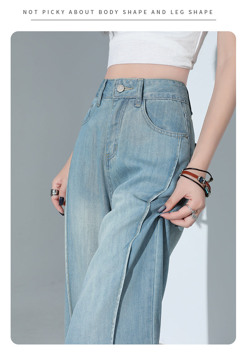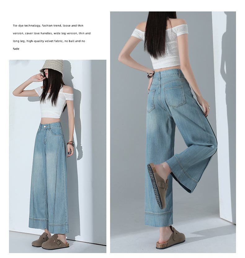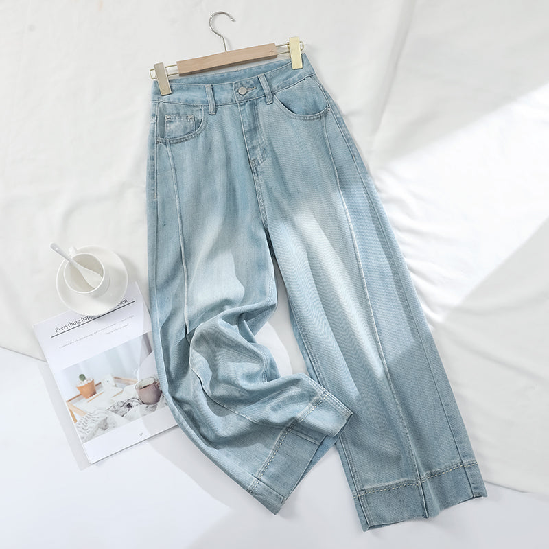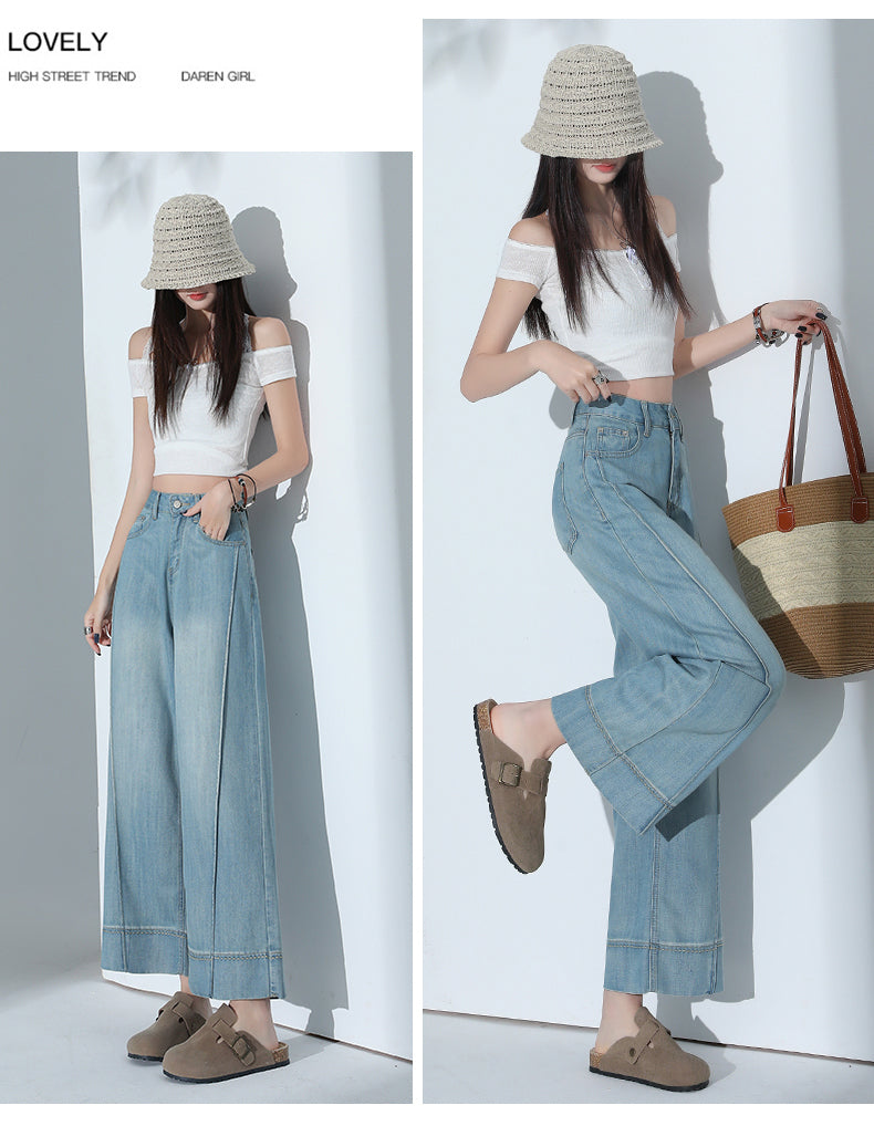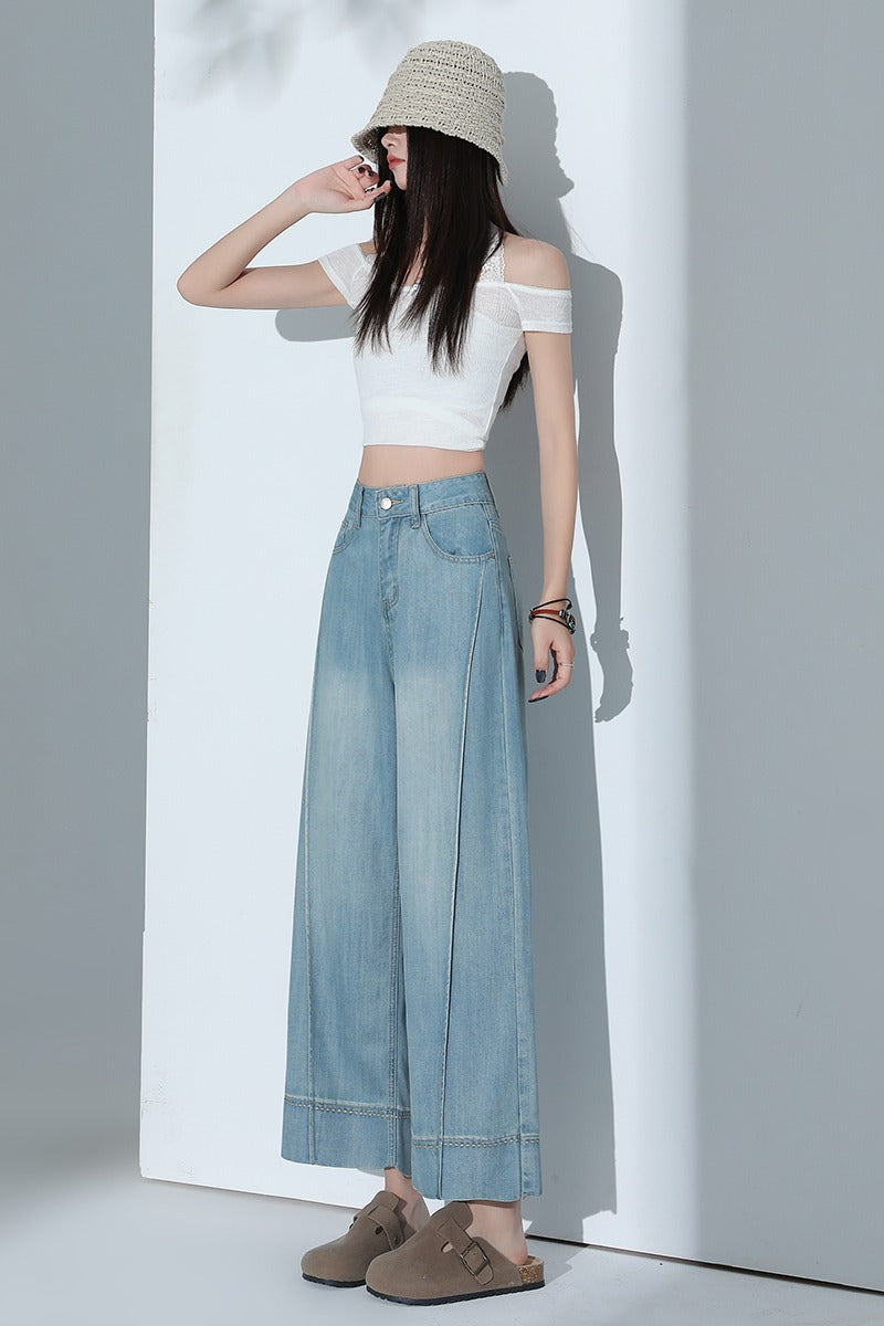 CGA6178-11B 夏薄款萊賽爾高腰垂感淺色天絲闊腿牛仔褲