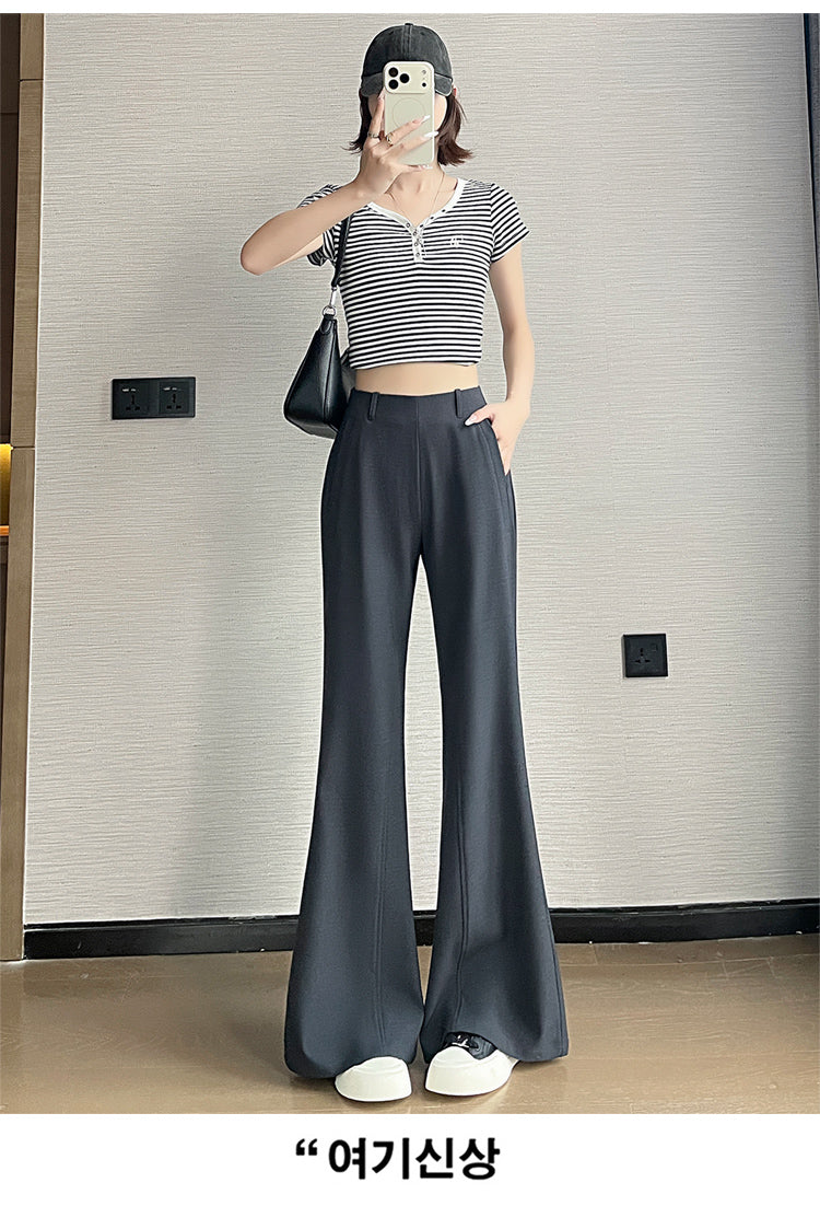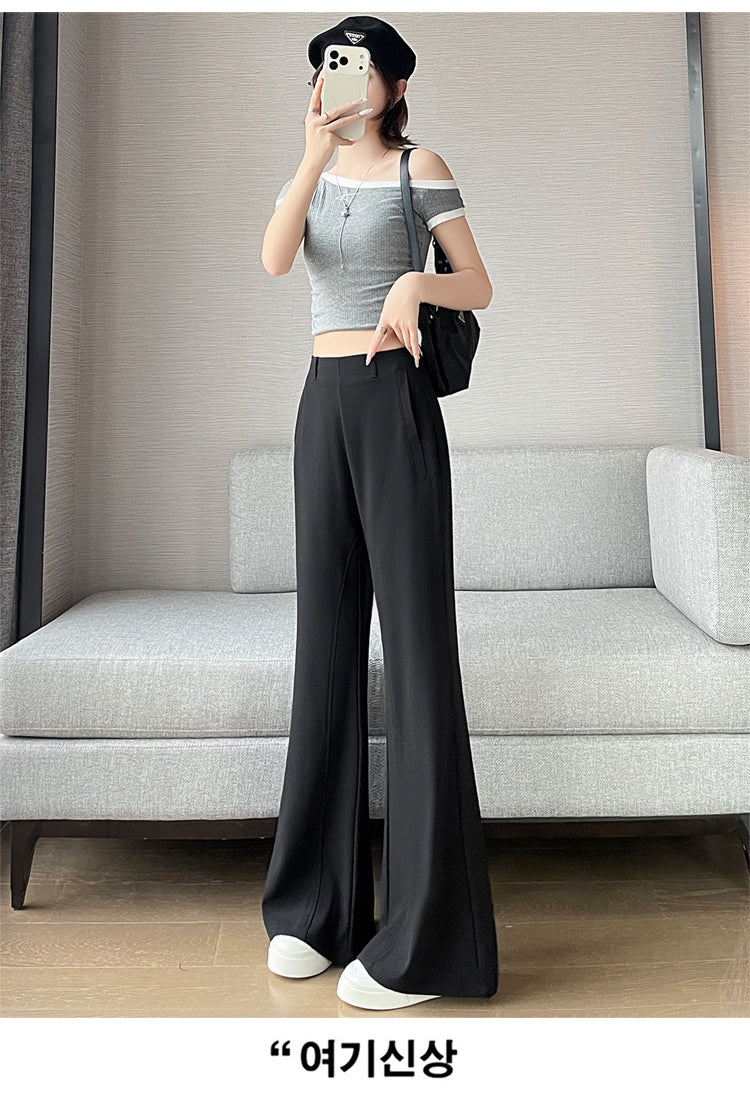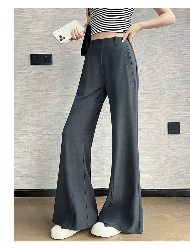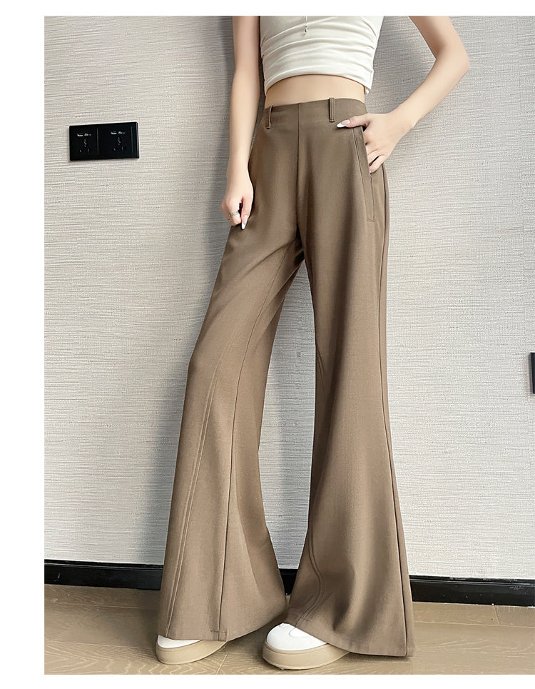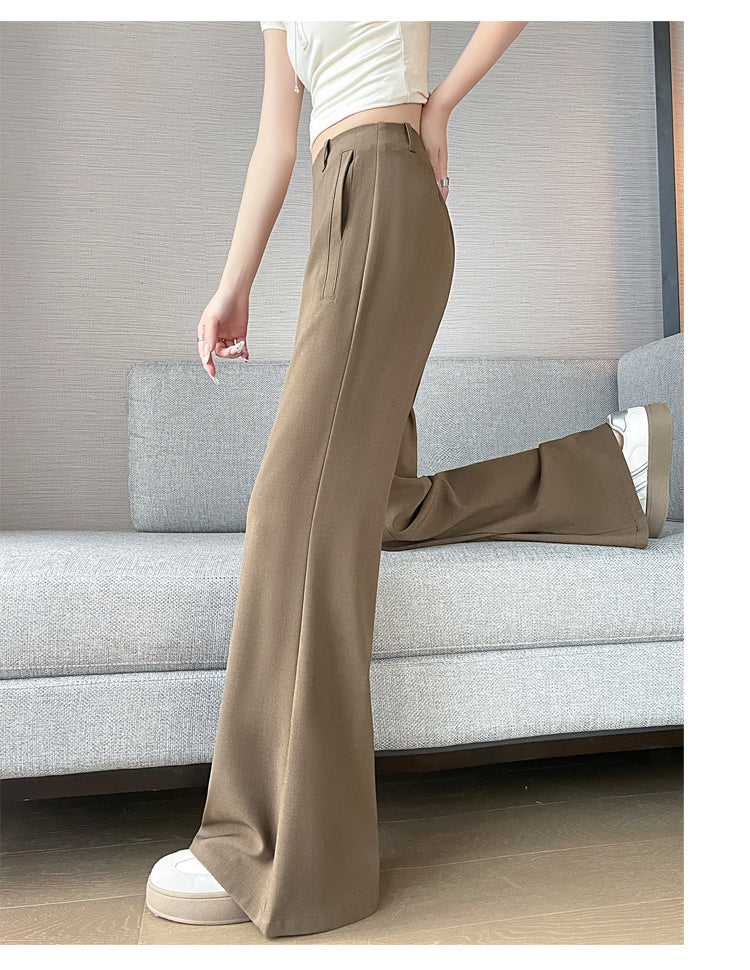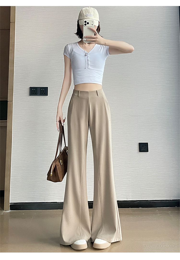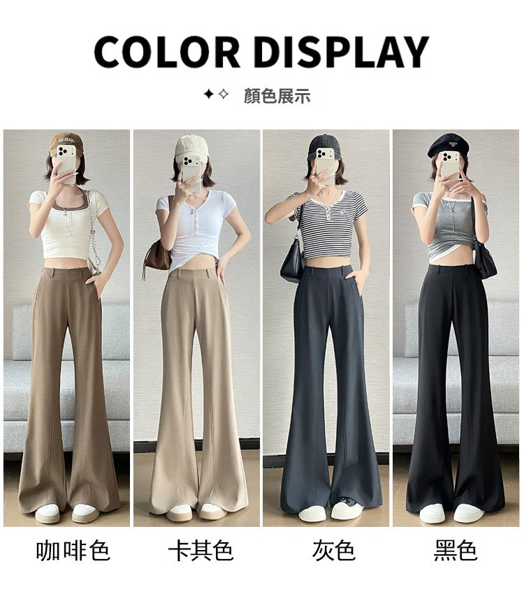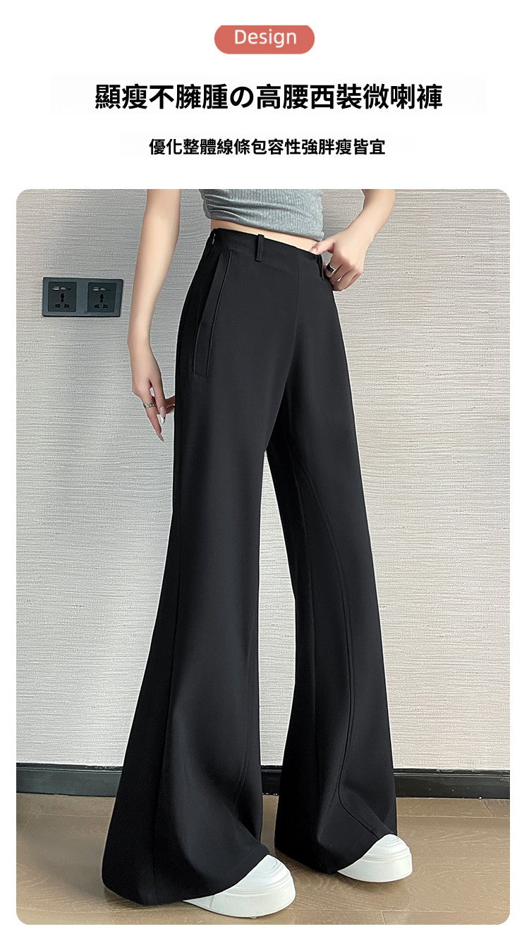 CGA6953-14B 春夏季西裝褲窄版闊腿褲高腰微喇叭直筒休閒拖地褲(4色.常規.加長款)