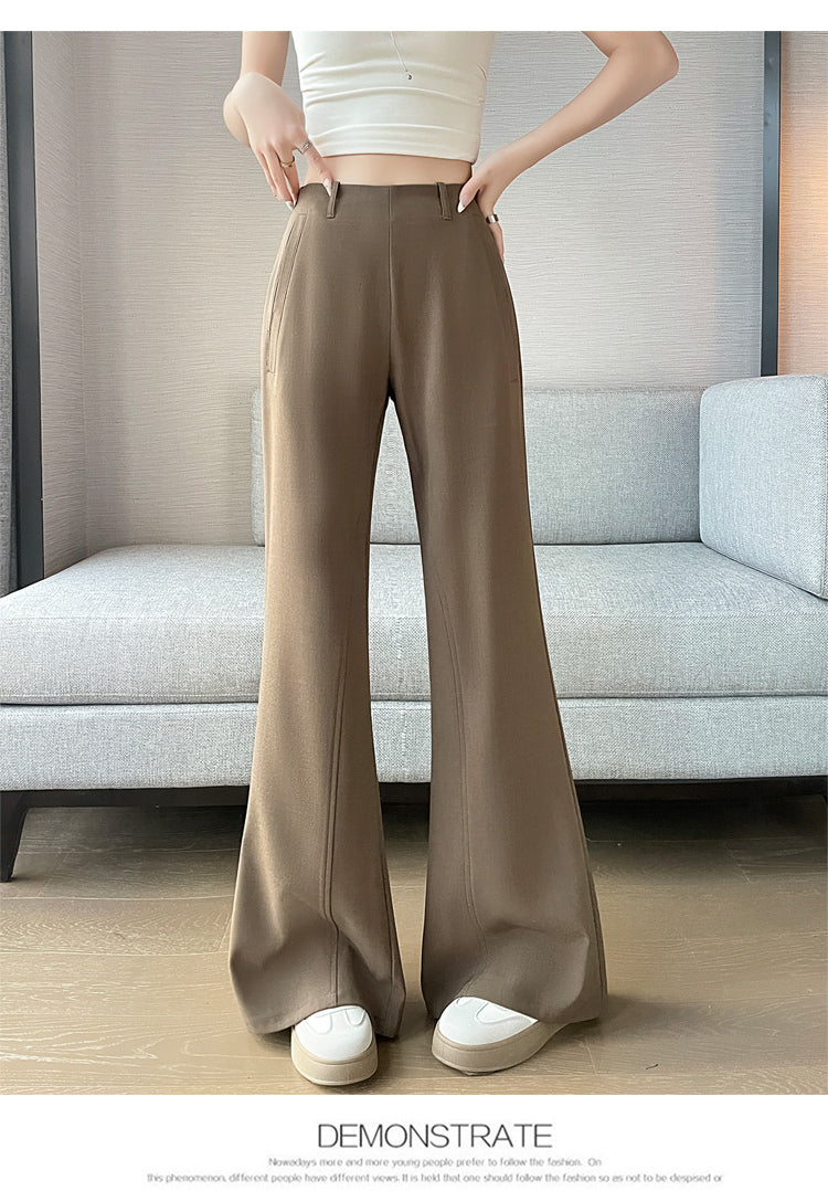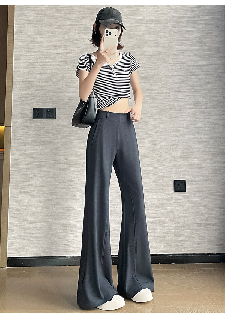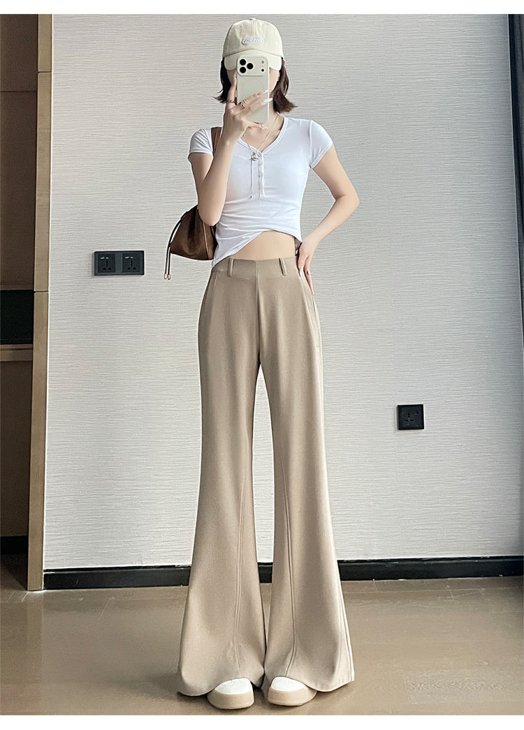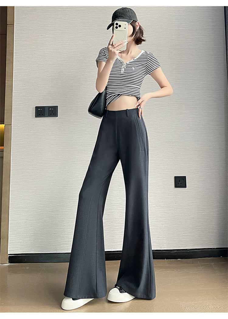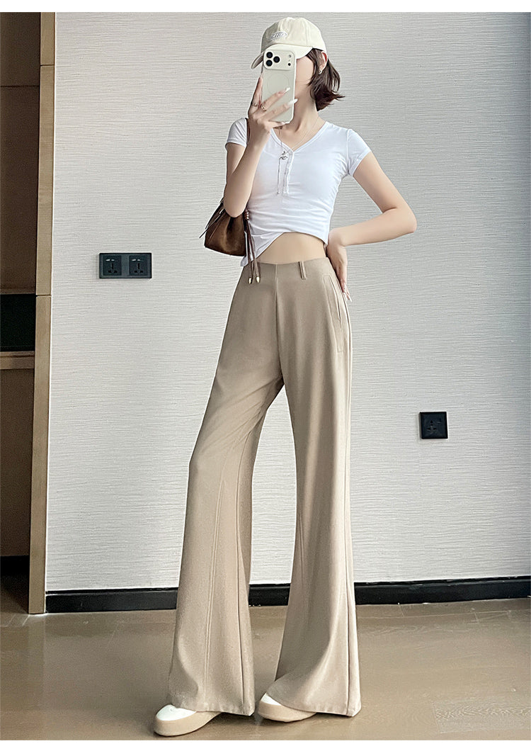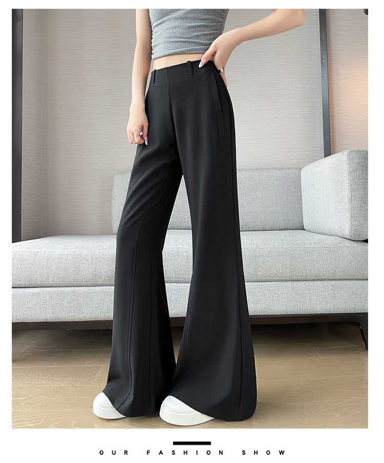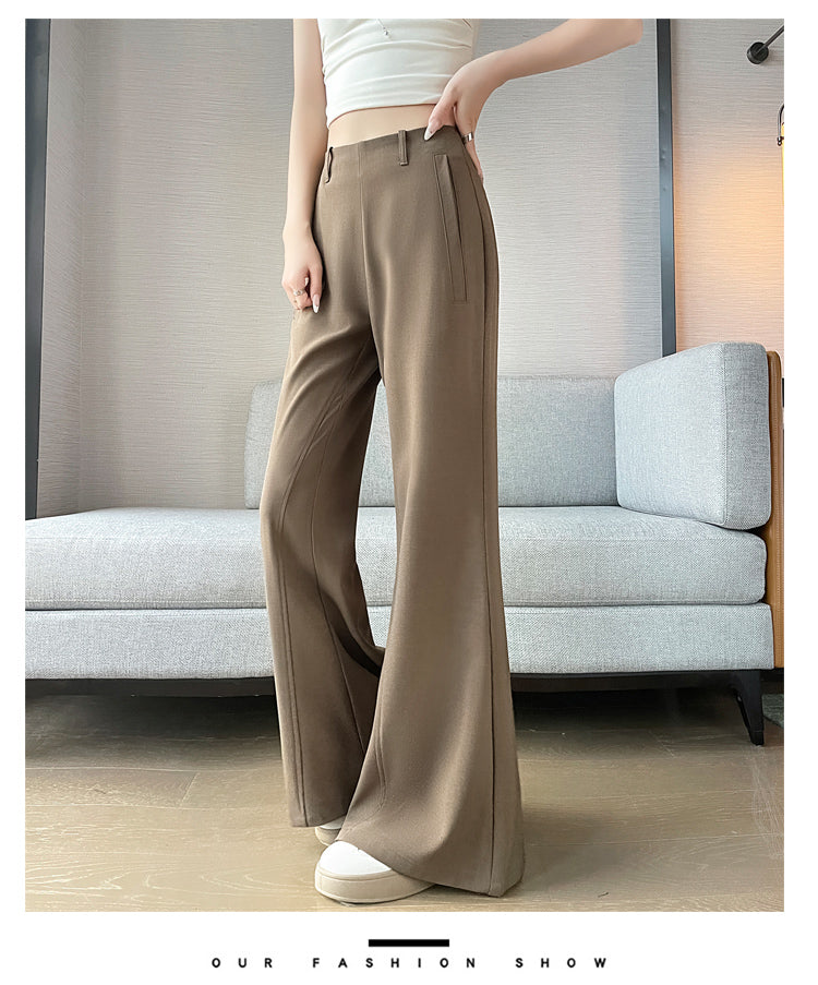CGA6953-14B 春夏季西裝褲窄版闊腿褲高腰微喇叭直筒休閒拖地褲(4色.常規.加長款)