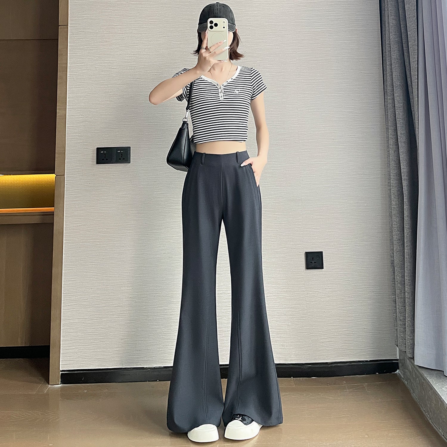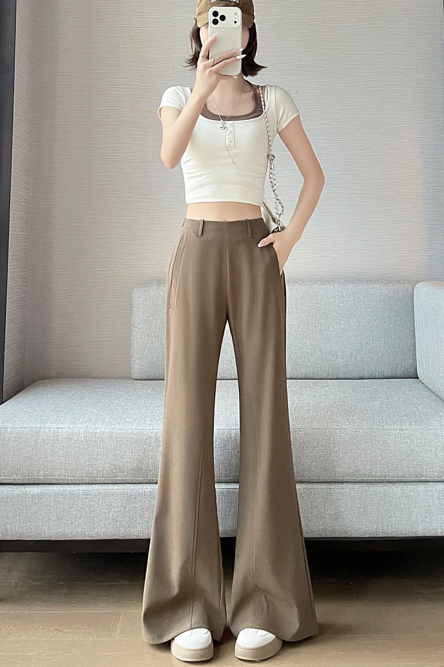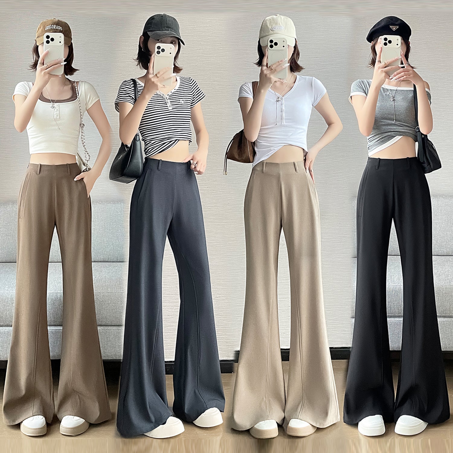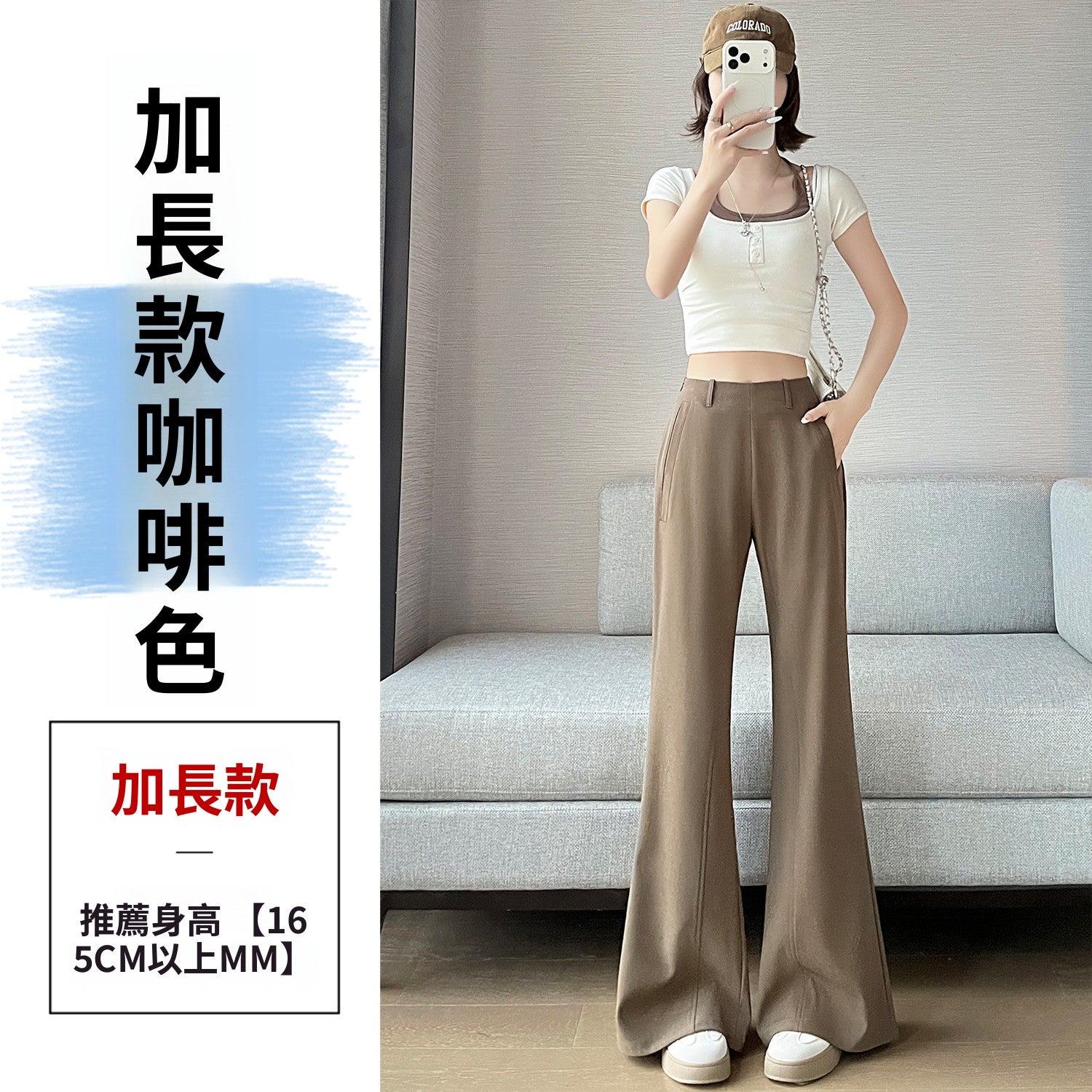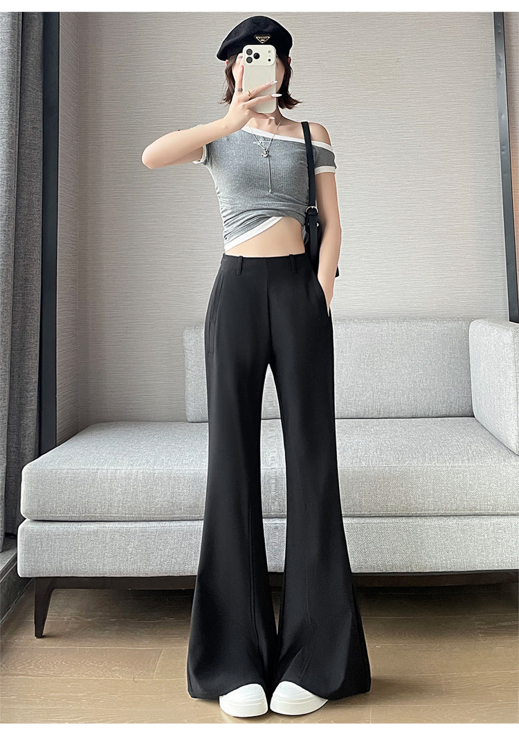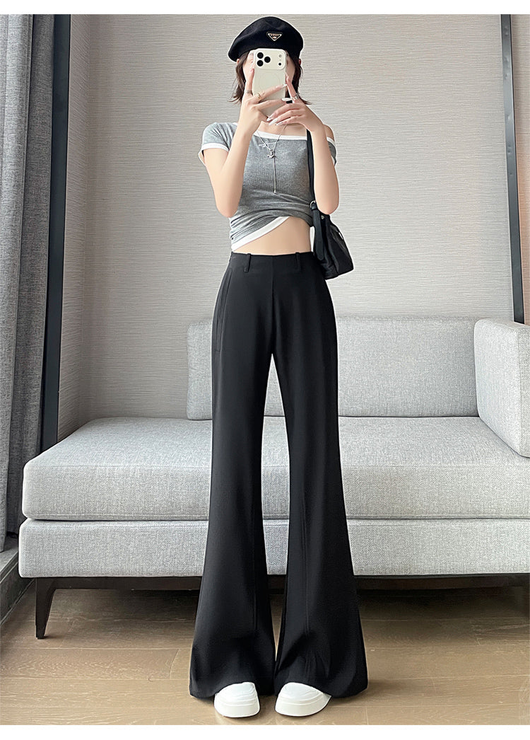 CGA6953-14B 春夏季西裝褲窄版闊腿褲高腰微喇叭直筒休閒拖地褲(4色.常規.加長款)