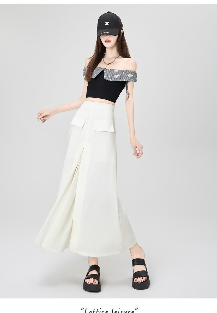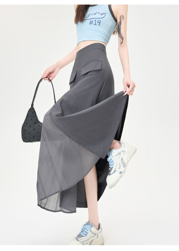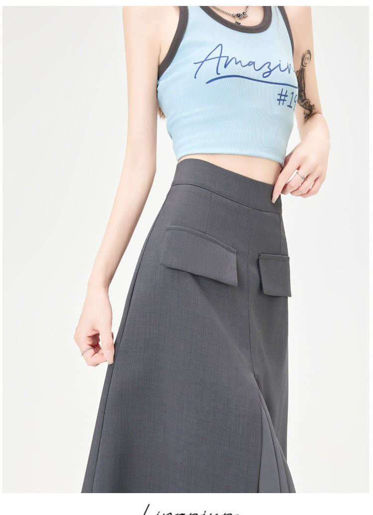 CGA9123-36H 西裝半身裙女中長款夏季直筒裙開叉包臀裙(3色)