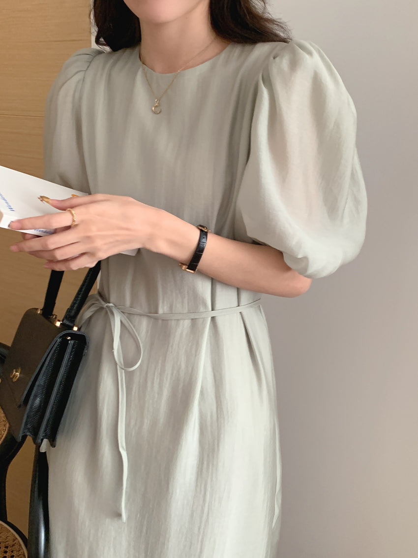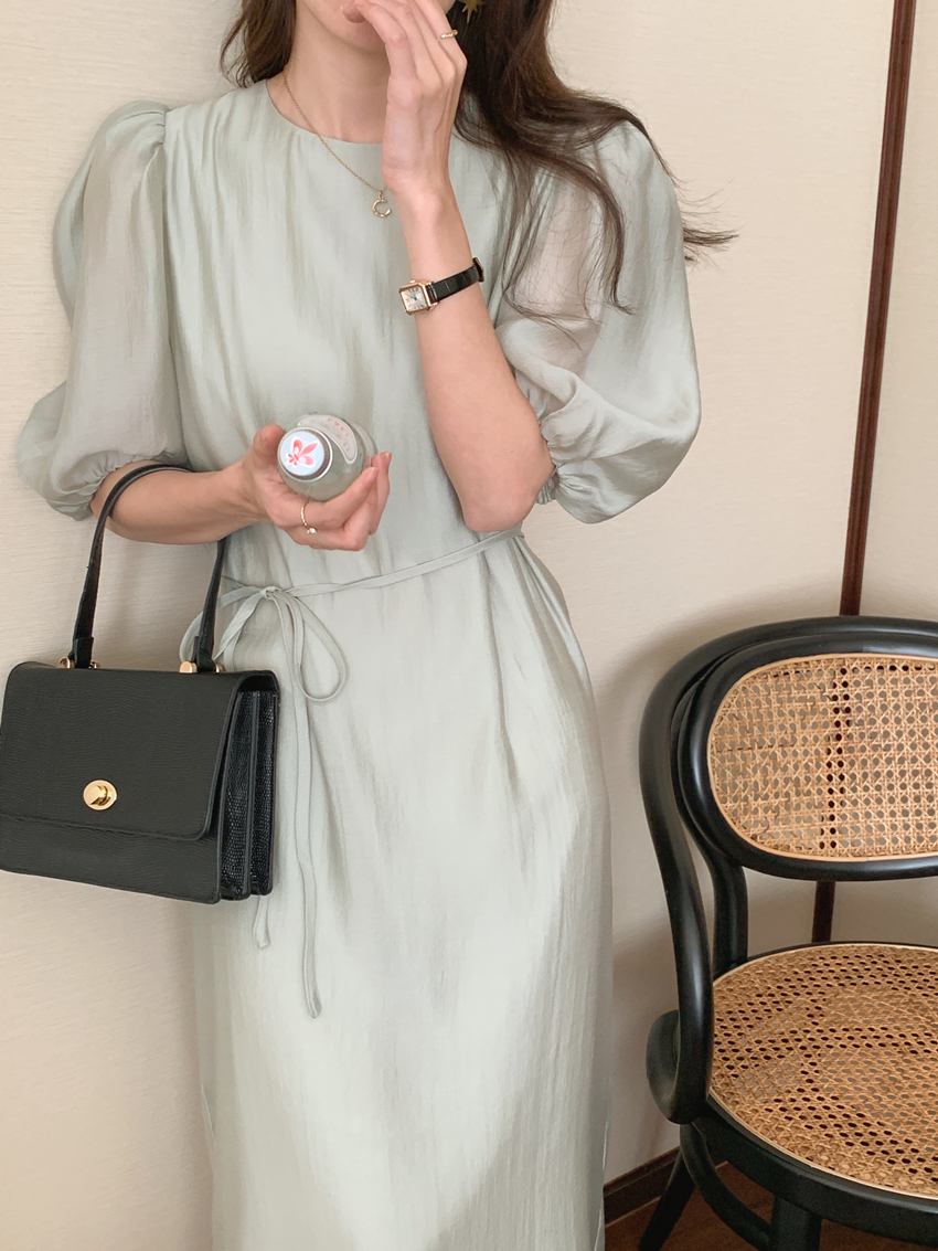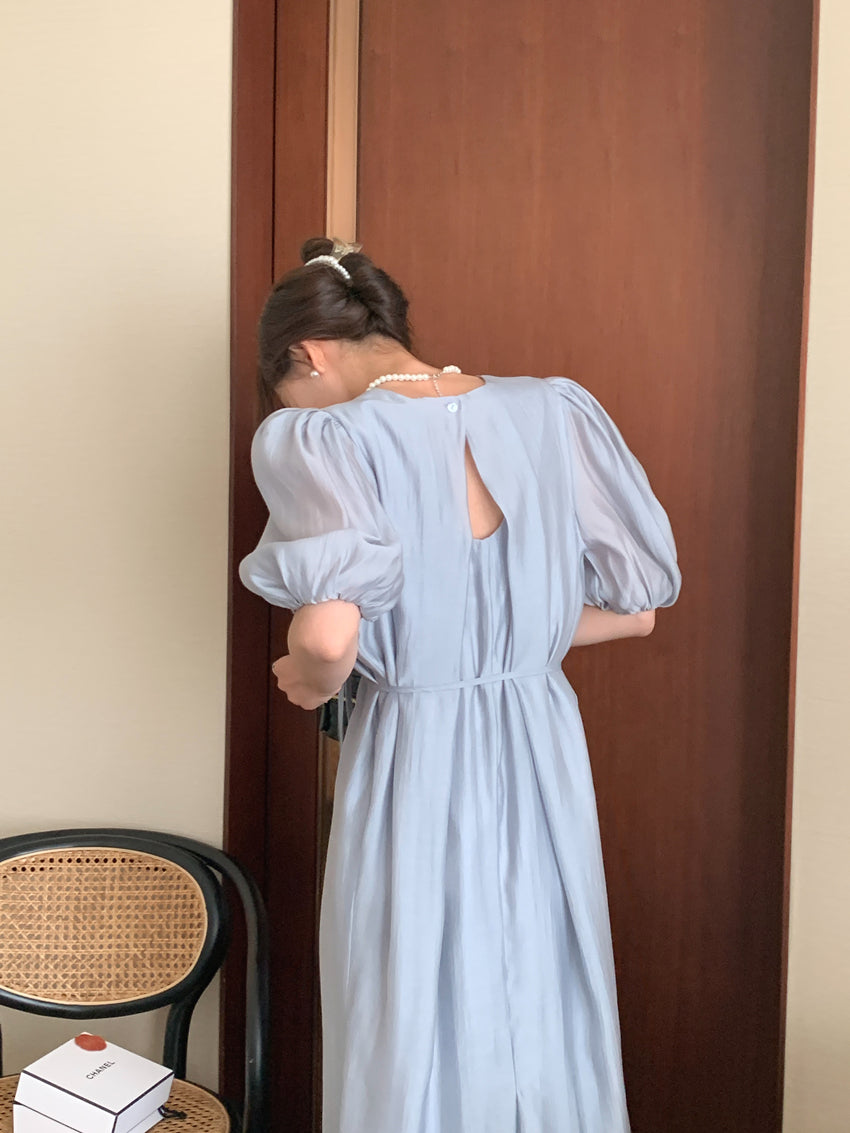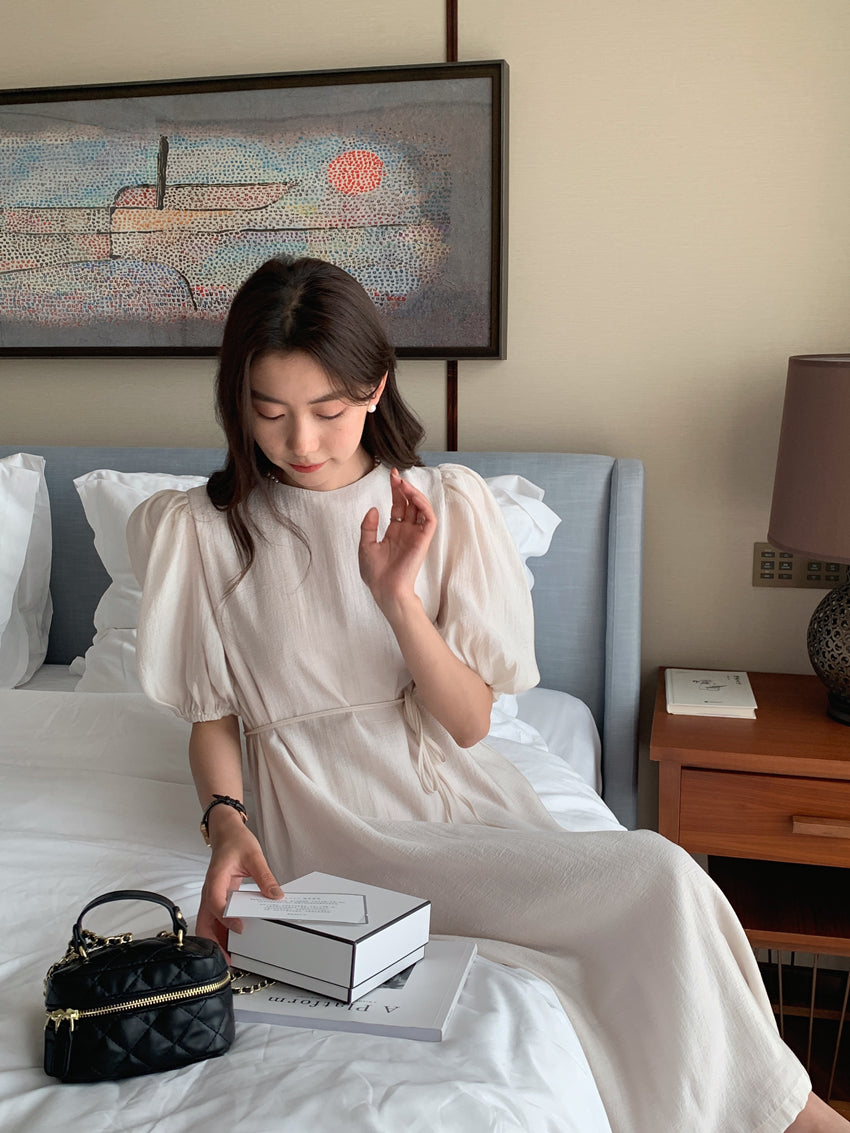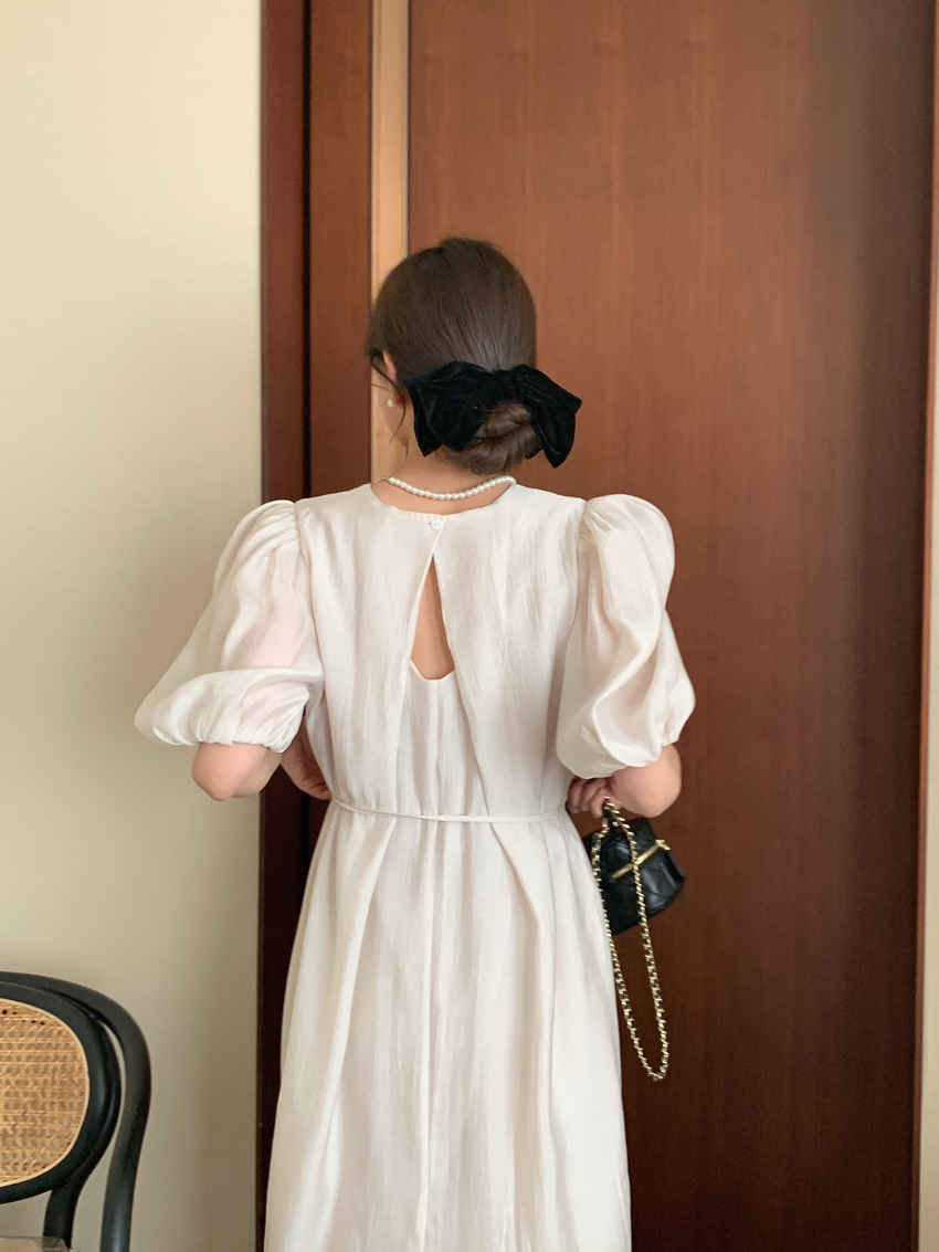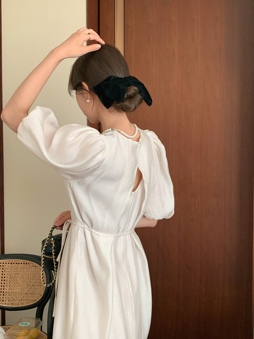 CGB1189-57B 復古泡泡袖鏤空設計系帶連衣裙(4色)