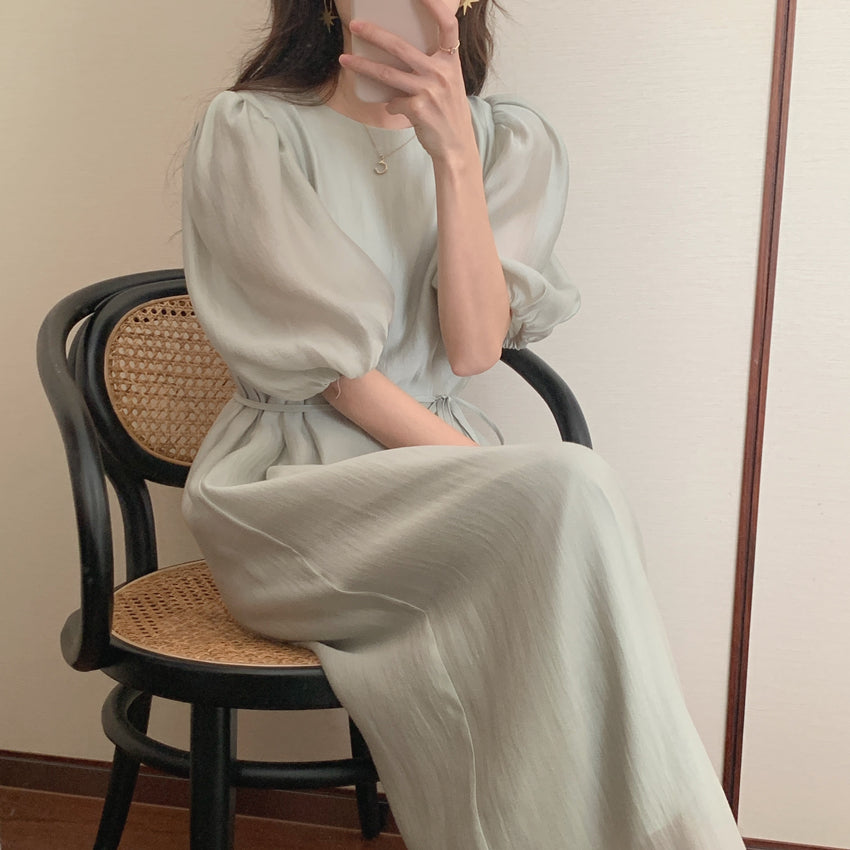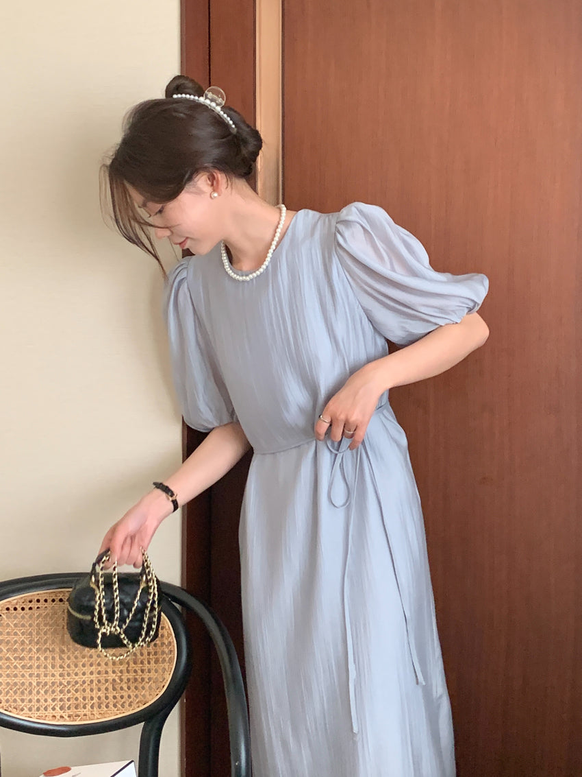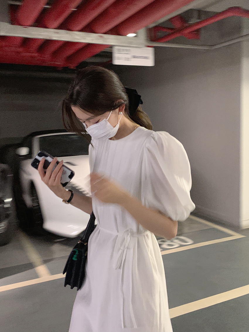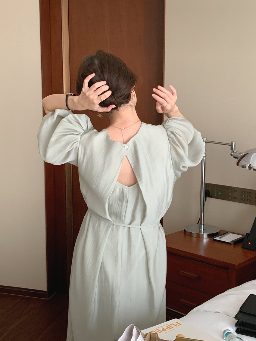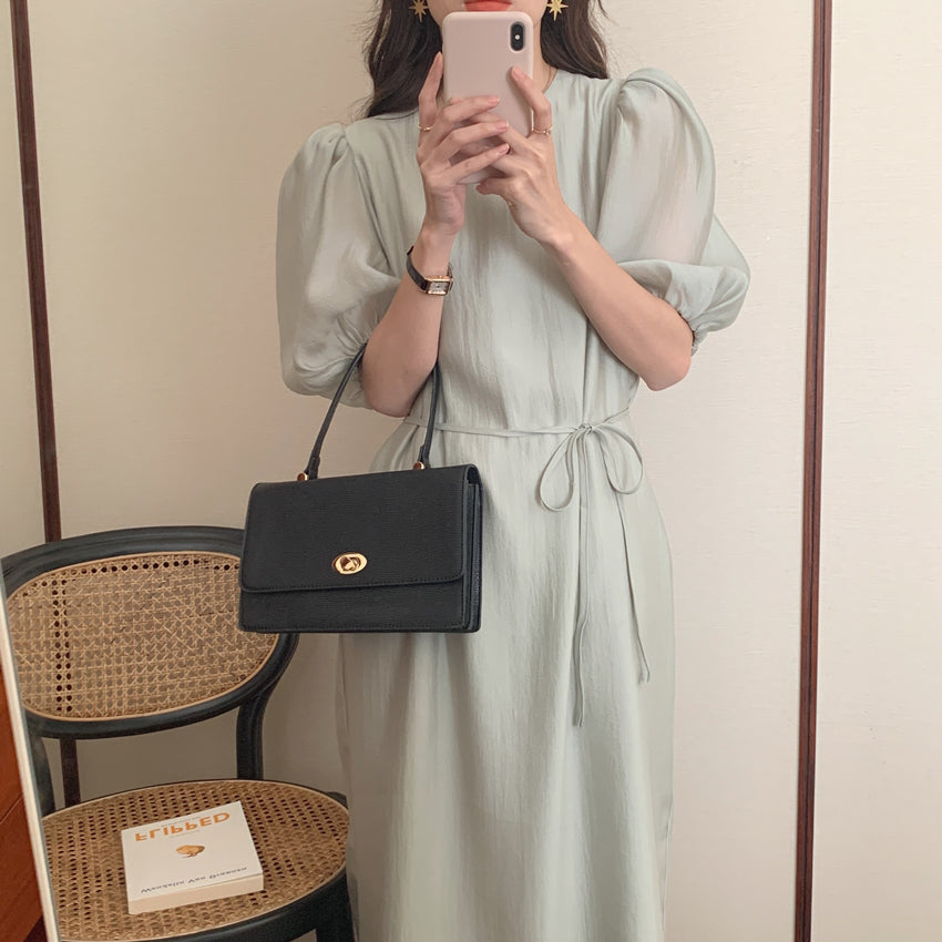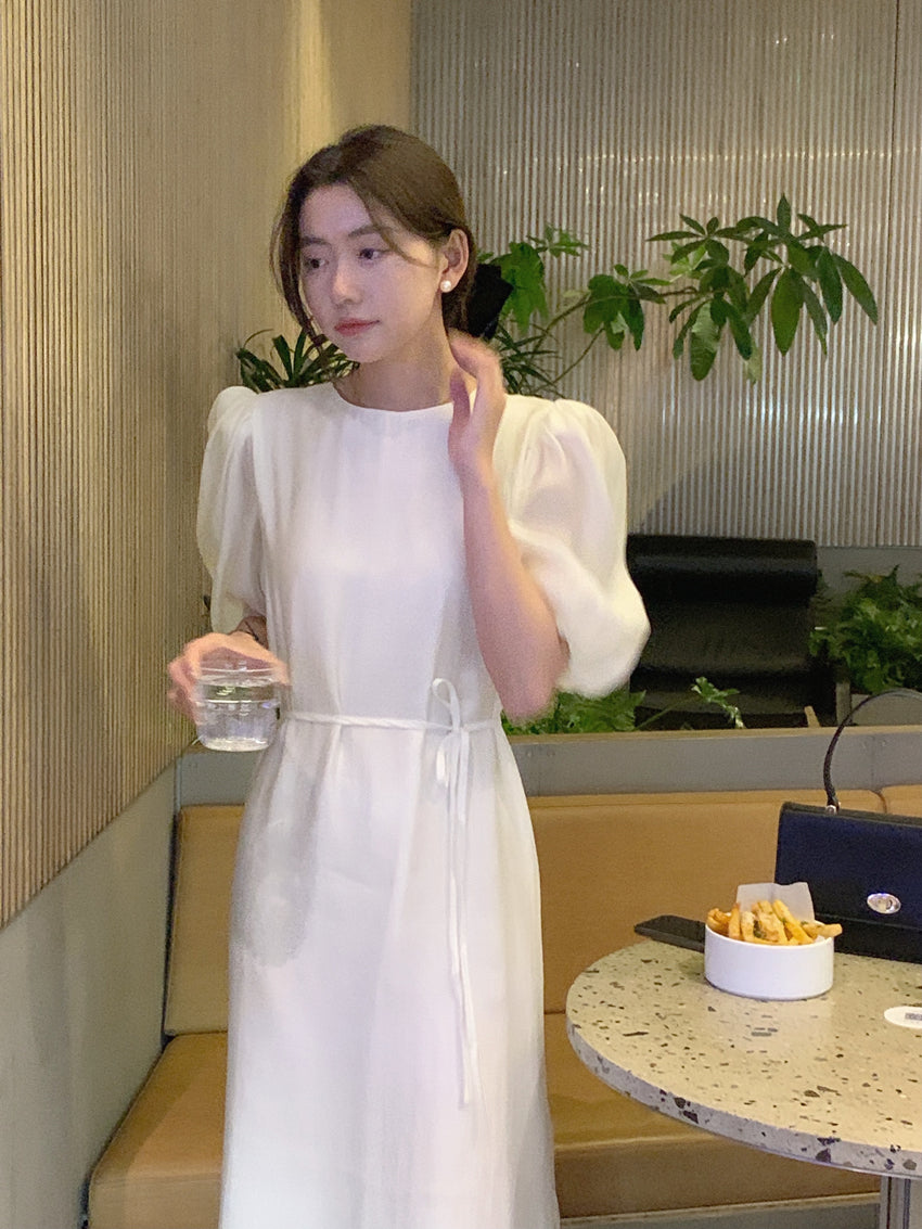 CGB1189-57B 復古泡泡袖鏤空設計系帶連衣裙(4色)